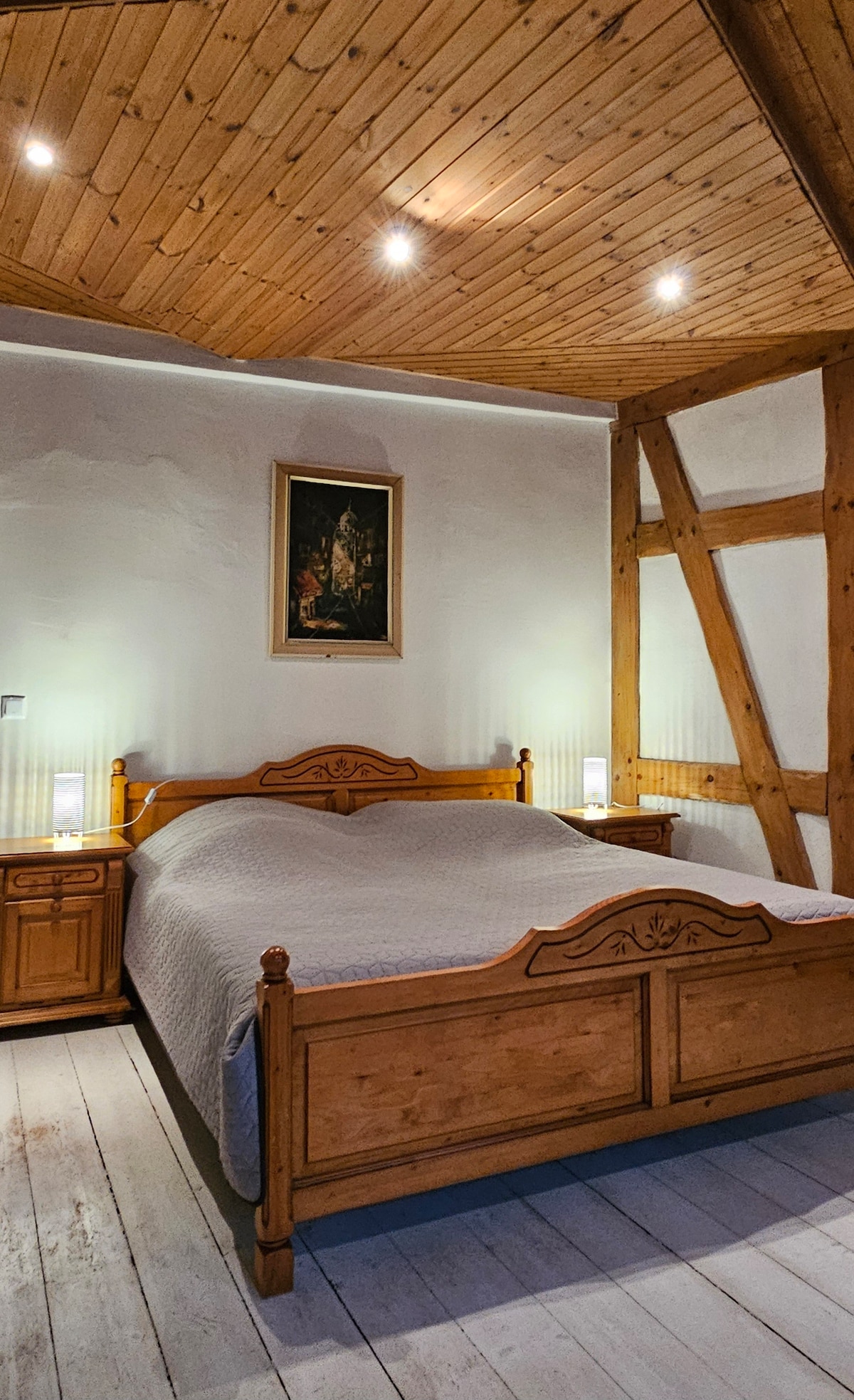 In der lieblichen Südharzlandschaft unweit der alten über 1000jährigen Stadt Nordhausen liegt unser denkmal- geschützter Hof, auf dem sich unsere Steinmetzwerkstatt befindet . Im teilausgebauten Wohnhaus, im KunstKonsum ( Galerie-Laden-Werkstatt) werden Sie u.a. wohnen.Ein inspirierender Ort. Genießen Sie die Atmoshäre eines über 150jährigen Hauses mit demKomfort von heute. Lassen sie sich in die gute alte Zeit versetzen u. streifen Sie den Alltag ab.