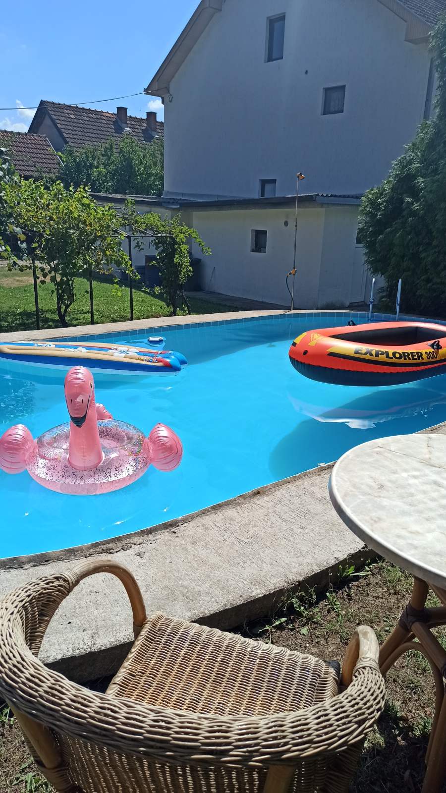 Dovedite celu porodicu u ovaj lep smeštaj sa mnogo prostora za zabavu. Zaboravite na guzvu i buku, šetajte poljima, pustite omiljenu muziku u mirnom sremskom selu. Uživajte u velikom dvorištu sa domaćim životinjama i golubovima. Po dogovoru u objektu se može služiti kontinentalni doručak, jaja i povrće proizvedeni u selu. Želimo vam da udahnete zadovoljstvo boravka u svom kutku prirode. Šetajte po šumi, pored reke Save, poljima, pijte divna vina, uživajte u kafanama...