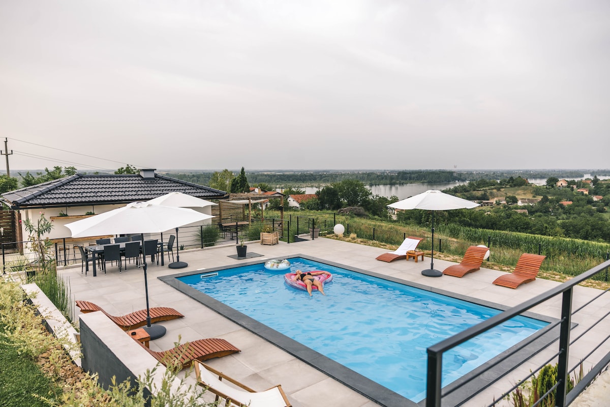 Welcome to our summer house in heart of northern Serbia - probably the best spot to experience Fruska Gora and at the same time enjoy in the peaceful ambient with panoramic views overlooking vineyards and Danube, relax by the pool,. Perfect for families with kids or friends. Located in valley of vineyards and fruit farms. Close to the national park with network of hiking paths as 40 minutes from BGD airport, 20 minutes from Novi Sad city. Looking for a place to party, please do not contact