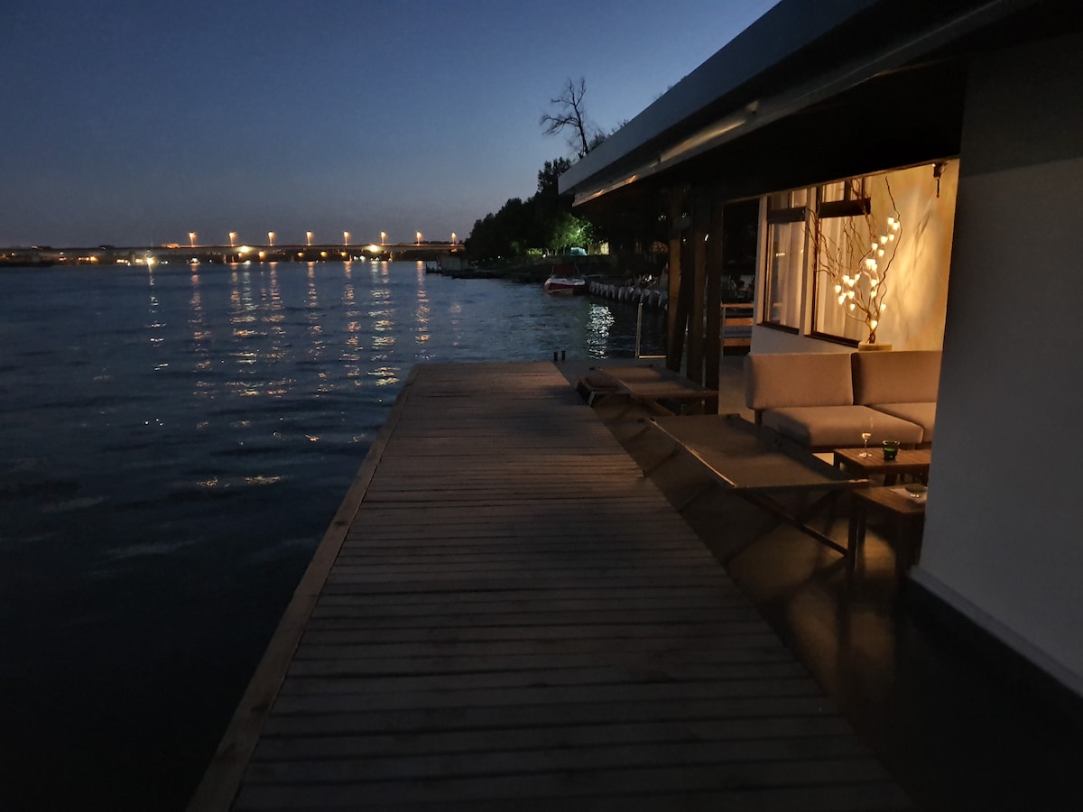 Luxury floating-house on the Sava river with private pool witch is designed to provide wonderful and unique experience. Just 10 minutes walk from famous city beach Ada Ciganlija. From city center 15 minutes by car and about 4 km distance from shopping center Ada mall that opened recently. Distance from airport is 25 minutes by car. Nearby you can find markets. Around floating-house there are 3 restaurants where you can eat fresh fish and many specialties.