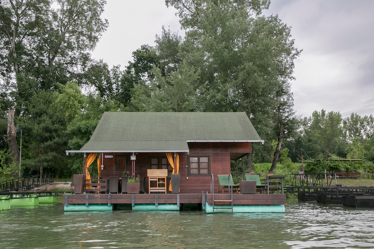 The architecturally stunning, floating vacation home is located 30 minutes from Belgrade Center and can accommodate 6 people. It includes a living room with kitchenette, 1 bedroom upstairs and a bathroom. The facilities in this house, constructed entirely out of wood, also include Wi-Fi, air conditioning and a parking area. The garden area with seating provides the perfect place to relax outdoors with barbeque surrounded by nature and Sava river, watching ducks and swans. Amazing sunset view.
