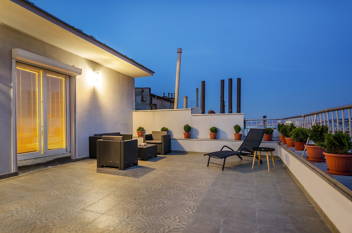 The apartment is full renovated a few months ago and everything is brand new. In the bedroom there is a large comfortable double bed and one big sofa bed in the living room. All in discreet led light. In the kitchen you can enjoy a modern flat-screen cooker, oven, refrigerator with freezer, dishwasher and washing machine and a large bar table. The bathroom is glazed with marble ceramics, it is very compact and clean. The bathroom is equipped with a hairdryer, towels, hygiene sets.