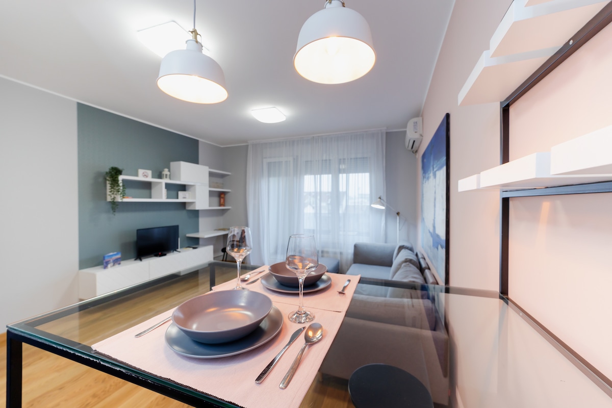 Modern, fully renovated apartment in New Belgrade; just a short walk from Sava Centar and Belgrade Arena. Located on the 1st floor in a quiet residential area with easy access to the highway and city center. Enjoy self-check-in, a comfy king-size bed, a fully equipped kitchen and bathroom, fast free WiFi, and a UHD Smart TV. Designed for comfort and convenience. Late checkout is available for an additional fee, depending on availability.