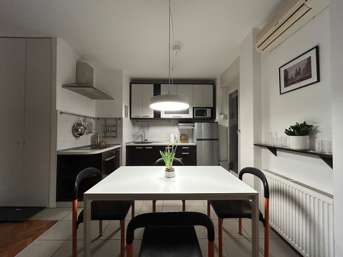 Modern, fully renovated apartment in New Belgrade; just a short walk from Sava Centar and Belgrade Arena. Located on the 1st floor in a quiet residential area with easy access to the highway and city center. Enjoy self-check-in, a comfy king-size bed, a fully equipped kitchen and bathroom, fast free WiFi, and a UHD Smart TV. Designed for comfort and convenience. Late checkout is available for an additional fee, depending on availability.