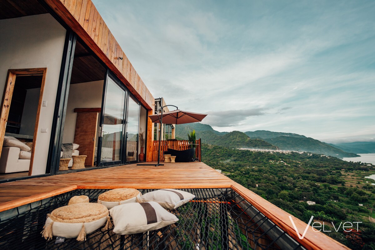 Very Unique & Modern Luxury House up in the Guatemalan Highlands with the sensation of floating up in the sky (1700m) -Features unobstructed Starlink connection with 24 hours of unbroken electricity (lithium/solar) -All windows folds fully open to greet the breathgiving views of 5 vulcanos and the “infinity lake” of the ever changing “painting” -Filtered spring water on tap -Bathroom hot tub for a closed or open door experience -12 m2 cantilevered hammock deck-net for stargaze & relaxation