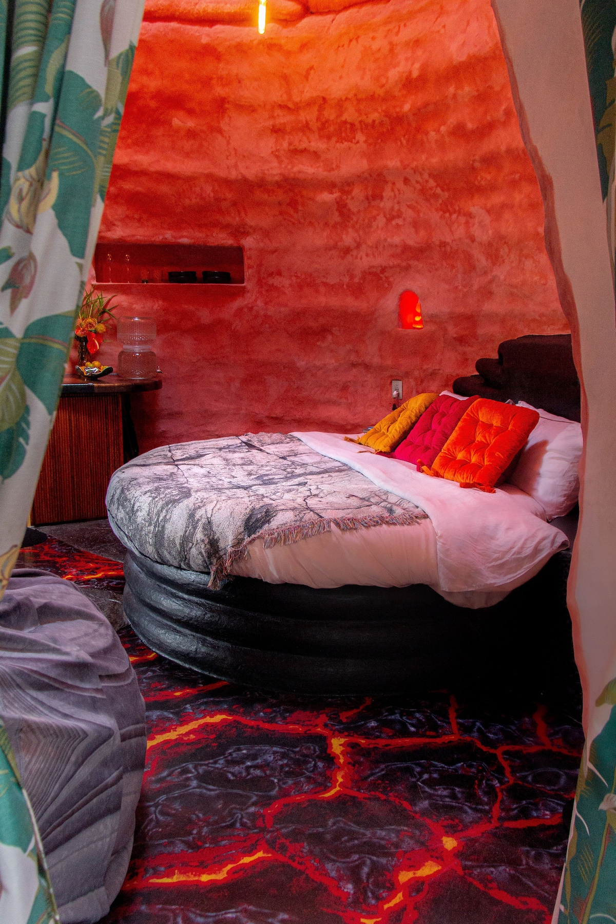 Lookout on aged lava flows in paradise with sunny days and pristine starry nights. Enjoy the Milky Way and luxury in an off-grid oasis with water catchment and solar. Here on the frontier where the lava greets the sun is a weekly block party every Wed. & Kehena Black Sand Beach 5.8 miles away. The Pele room is one of four private studios that include the shared kitchen, wifi, and work well for large groups; check out our other listings (Paka’a, Nāmaka, Kāne) to see more reviews and details.