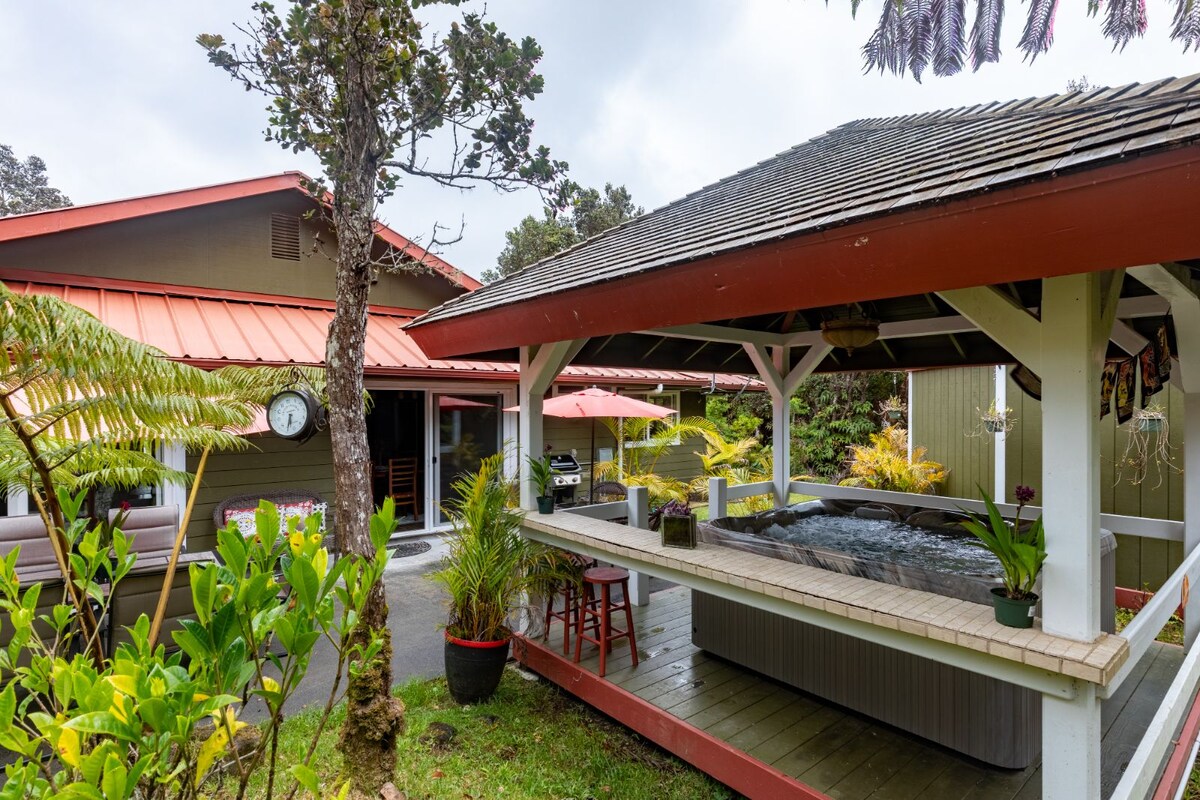 YOUR PRIVATE COTTAGE AMONG THE TREE FERNS Step into a romantic rainforest sanctuary just minutes from Hawaiʻi Volcanoes National Park. Nestled among native ʻōhiʻa and hapuʻu trees, this spacious 850 sq. ft. one-bedroom cottage is perfect for nature lovers, couples, and solo travelers seeking peace and inspiration.