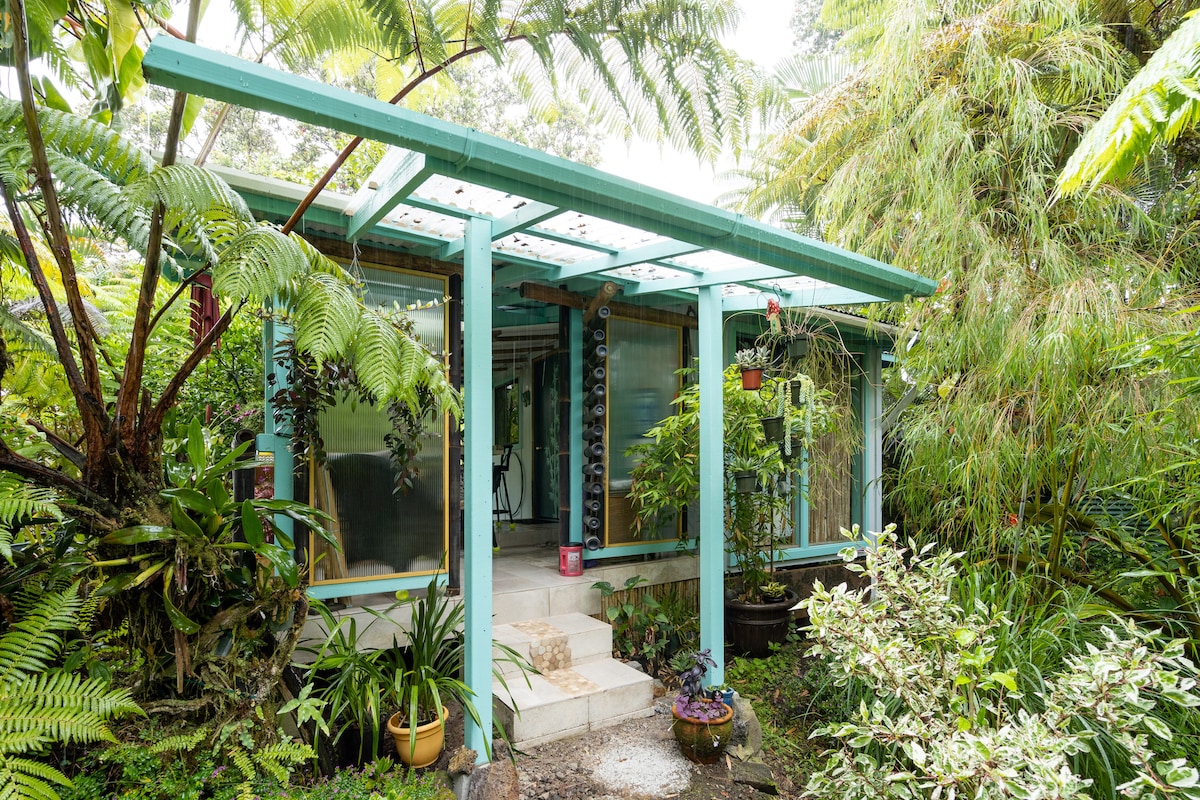 YOUR PRIVATE COTTAGE AMONG THE TREE FERNS Step into a romantic rainforest sanctuary just minutes from Hawaiʻi Volcanoes National Park. Nestled among native ʻōhiʻa and hapuʻu trees, this spacious 850 sq. ft. one-bedroom cottage is perfect for nature lovers, couples, and solo travelers seeking peace and inspiration.