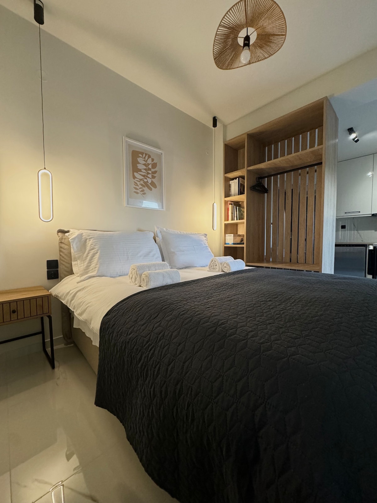 Σύγχρονο στούντιο στο κέντρο του Βόλου με πάρκινγκ Απολαύστε τη διαμονή σας σε ένα κομψό και φωτεινό στούντιο στον 5ο όροφο νεόδμητης οικοδομής, στην καρδιά του Βόλου. Ο χώρος έχει σχεδιαστεί με μίνιμαλ αισθητική και ζεστές αποχρώσεις, προσφέροντας άνεση και ηρεμία σε κάθε επισκέπτη. Η τοποθεσία είναι ιδανική: καφέ, εστιατόρια, καταστήματα και τον παραλιακό πεζόδρομο, ενώ παράλληλα ο 5ος όροφος εξασφαλίζει ησυχία & άνεση. Ιδανικό για ζευγάρια, επαγγελματικά ταξίδια,σύντομες αποδράσεις.