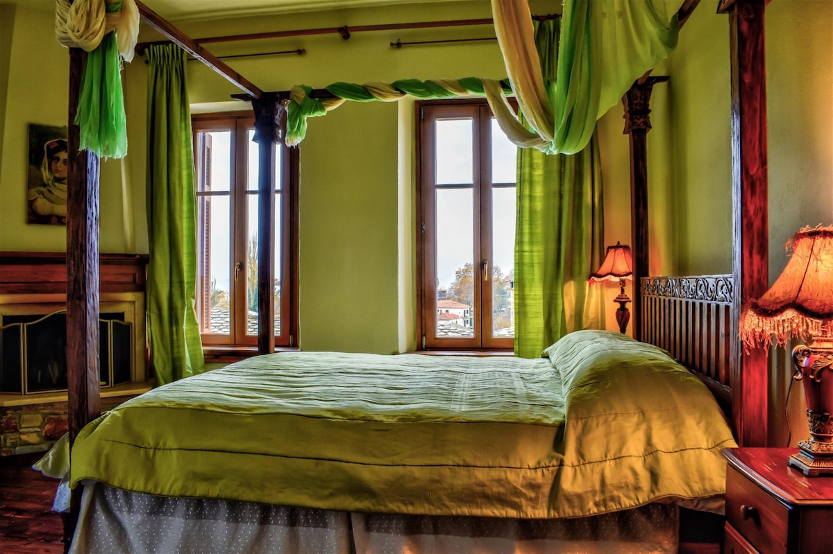 Anna's mansion 10 minutes from Volos, at the foothills of Pelion,in a dreamy green garden with pool, provides a luxurious stay in an environment of silence and isolation. Enjoy the spacious room with king size comfortable bed and have the experience of the private bathroom hammam and the jacuzzi! (four more rooms available) The living room area with its warm colours and textures and the big marble fireplace offers unforgettable moments! Great place for inspiration, meditation and pleasure!