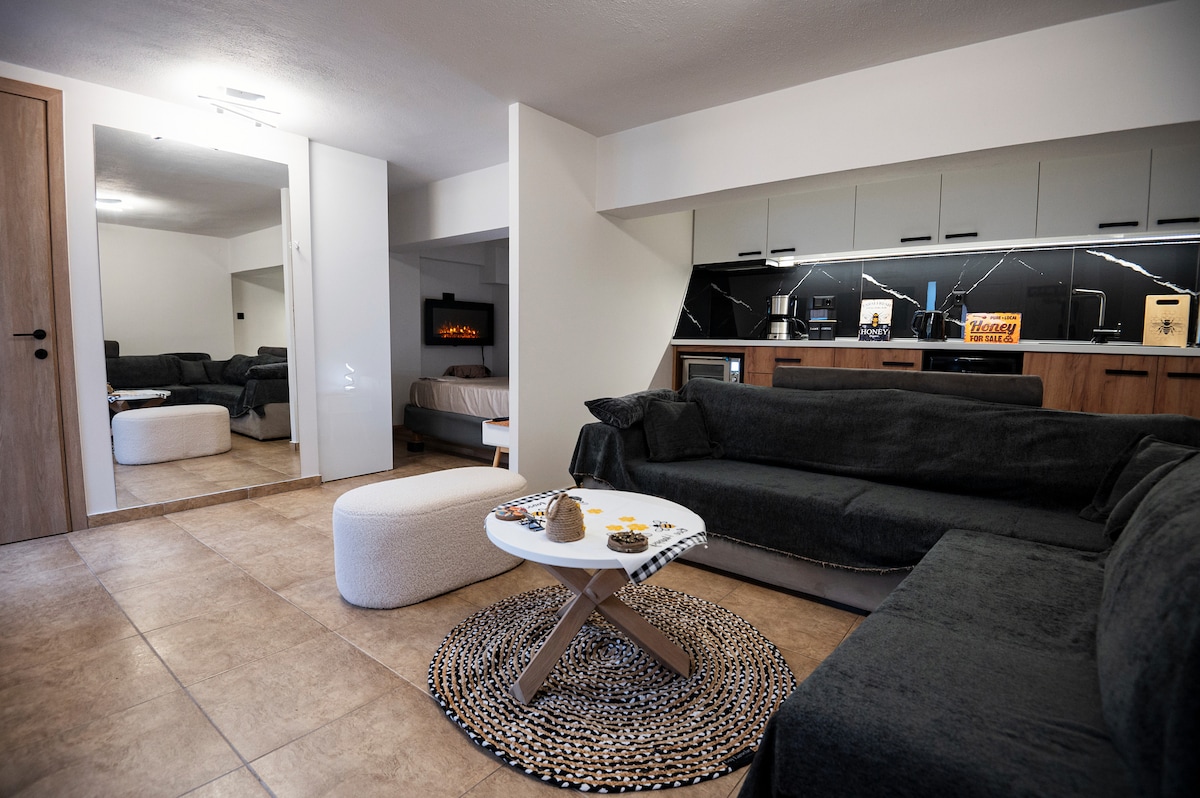 Πρόκειται για ένα καινούριο διαμέρισμα, προσανατολισμένο στην άνεση των επισκεπτών του, ιδανικό για ζευγάρια και επαγγελματίες. Βρίσκεται στο κέντρο της πόλης, με θέα τη θάλασσα και το Πήλιο. Απέχει μόλις 1 λεπτό από την παραλία, 3 λεπτά από την προβλήτα του λιμανιού και 2 λεπτά από την Ερμού.
