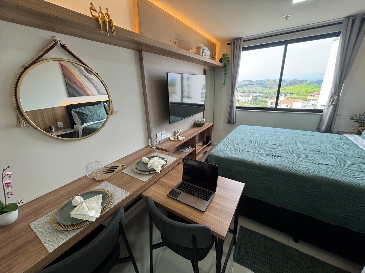 Studio completo e aconchegante em Volta Redonda. Aproveite este estúdio moderno com linda vista, em uma área silenciosa, a poucos minutos do Hospital Unimed e do shopping Park Sul. Equipado com ar condicionado, Wi-Fi, cozinha completa, cama de casal e sofá-cama, o espaço acomoda até 3 pessoas com todo conforto. Ideal para quem busca praticidade e uma localização estratégica, seja a trabalho ou lazer.