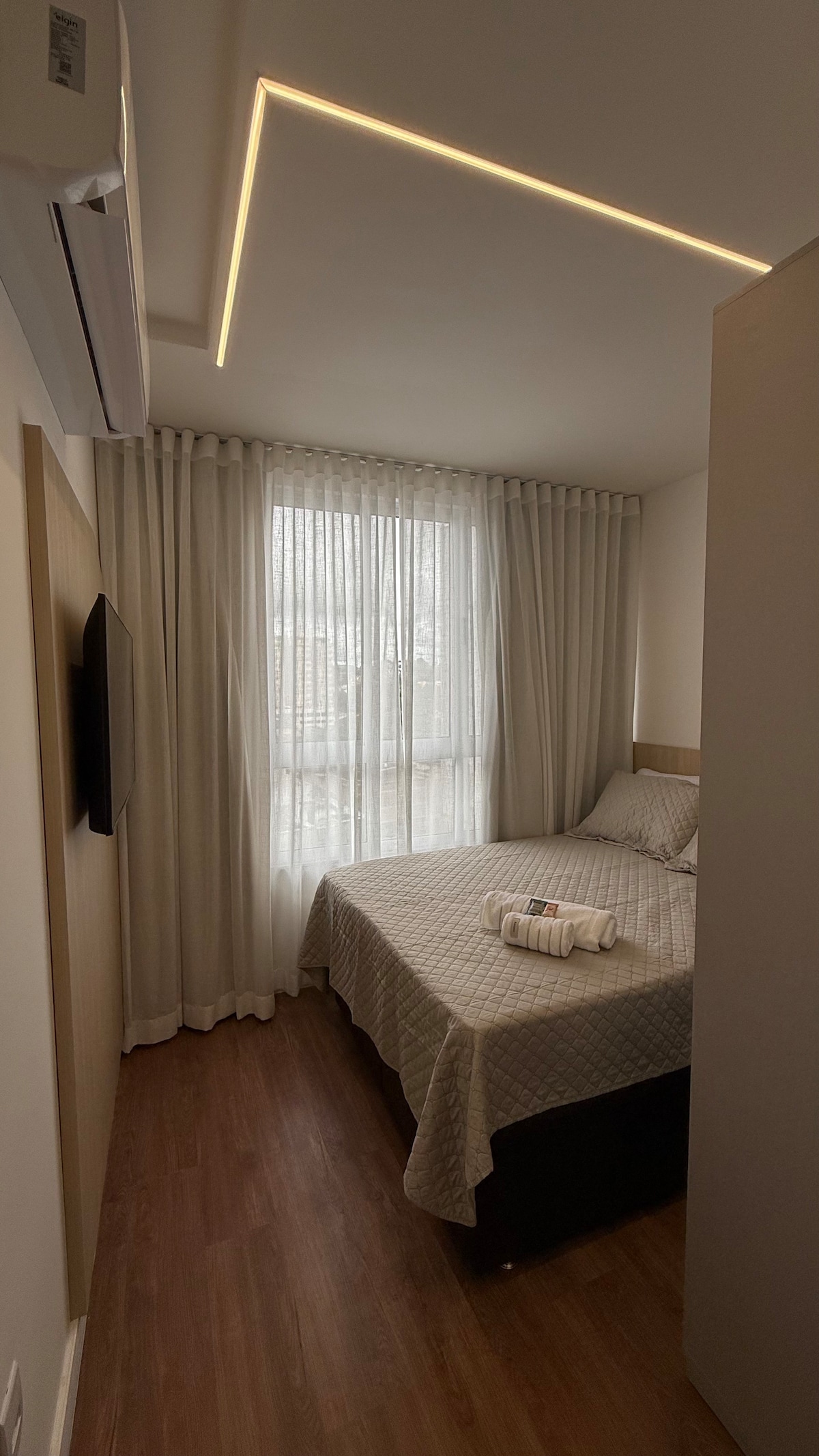 Relaxe neste espaço calmo e cheio de estilo. Flat novo em área nobre. Possui ar-condicionado, Wi-Fi e TV. Cozinha equipada com geladeira, micro-ondas, Air fryer, cafeteira, sanduícheira e fogão por indução. Roupa de cama e banho e lavanderia no prédio(uso pago). Prédio com câmeras de segurança, elevador, detector de fumaça. Ideal para quem busca tranquilidade, conforto e ótima localização.