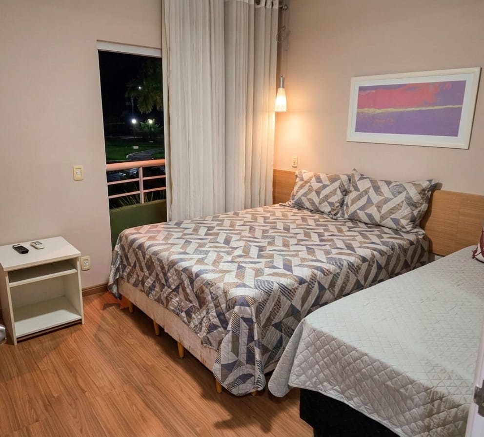 Andar térreo, próximo a todas as atrações do condomínio. Flat com micro-ondas, air fryer, panela de arroz, geladeira, filtro, sanduicheira e cafeteira. Comodidades para estadia mais confortável. Ar condicionado no quarto e sala. Acomodações para 5 pessoas. Queremos transformar seus momentos inesquecíveis com conforto e simplicidade. Desfrute das piscinas. Visite o Aldeia das Águas e todas as suas atrações (ingressos vendidos a parte). Serviço de TV com mais canais e qualidade de imagem.