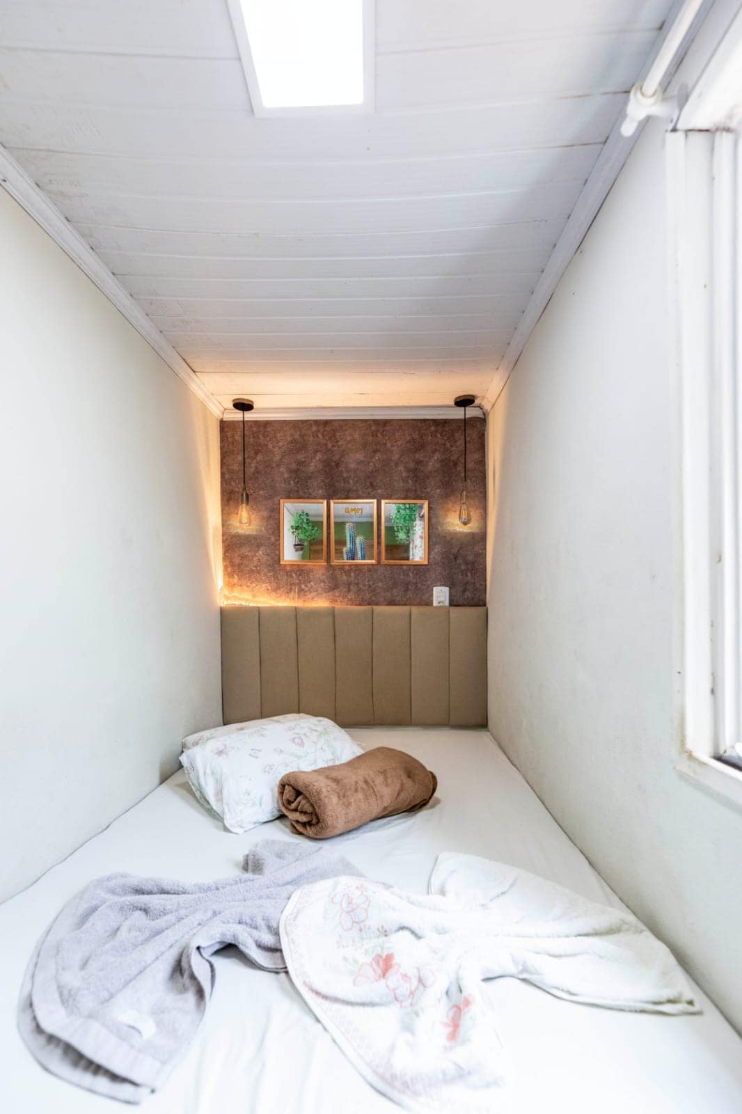 Espaço AMPLO e COMPLETO .Quarto enorme com varanda e MUITO arejado.Possui ventilador de teto e AR CONDICIONADO.Banheiro SEMPRE limpíssimo! Temos wi-fi,tv com senha de Netflix, enxoval BEM cuidado e uma cozinha,equipada com fogão, geladeira duplex,Airfryer cafeteira,liquidificador,microondas e TODOS os utensílios necessários.Temos extintor de incêndio,câmera de segurança na entrada. O acesso é independente,com TOTAL privacidade e feito por escadas.Local agradável,bem localizado e familiar.