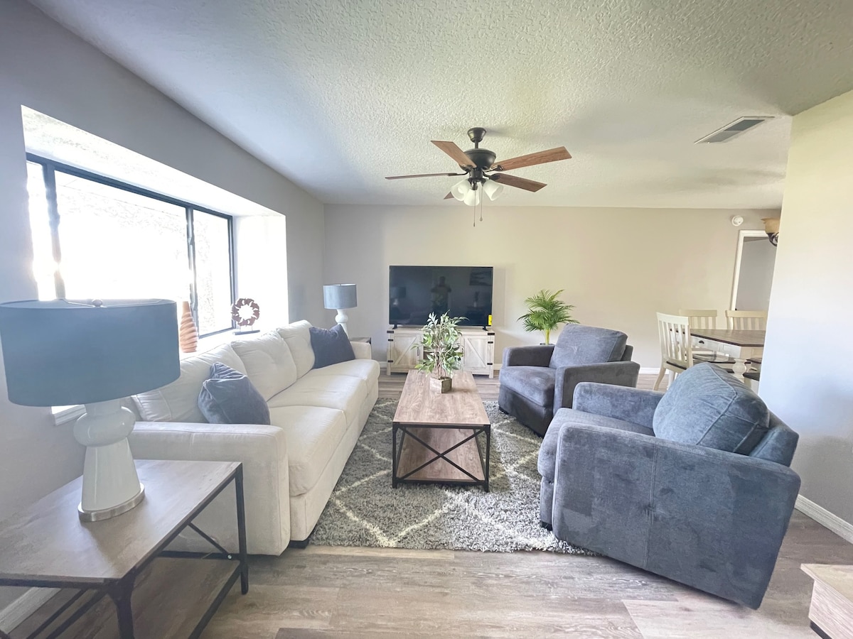 Prefect getaway home. Extended vacation or work remotely while on an extended vacation. Located within 15 minutes from Hospitals, less than 45 minutes from the famous Daytona Beach, and an hour drive to Disney, Universal Studios and Orlando attractions.. The house has been stylishly renovated with new bathrooms and kitchen. Daytona Speedway is only 31 minutes drive. Fenced in yard is a perfect for for your pet companion or kids to play. You can enjoy the Hammock and barbecue grill as well.