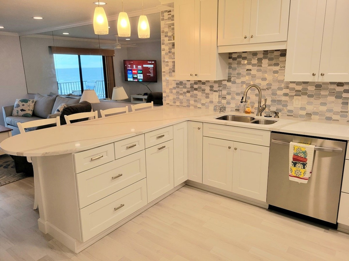NIGHTLY PRICE REDUCED due to Building renovations restricting our balcony usage. ON THE BEACH! Your very own cozy spacious studio with a private balcony* overlooking the Sand, Surf, and Sunrises. Daytona Shores is the serene beach of Daytona and is just a few short minutes away from a variety of activities and restaurants. Our 3rd-floor unit is completely remodeled with free dedicated 45+Mbps WiFi, streaming channels, a full kitchenette, and free parking. *Unavailable beginning November