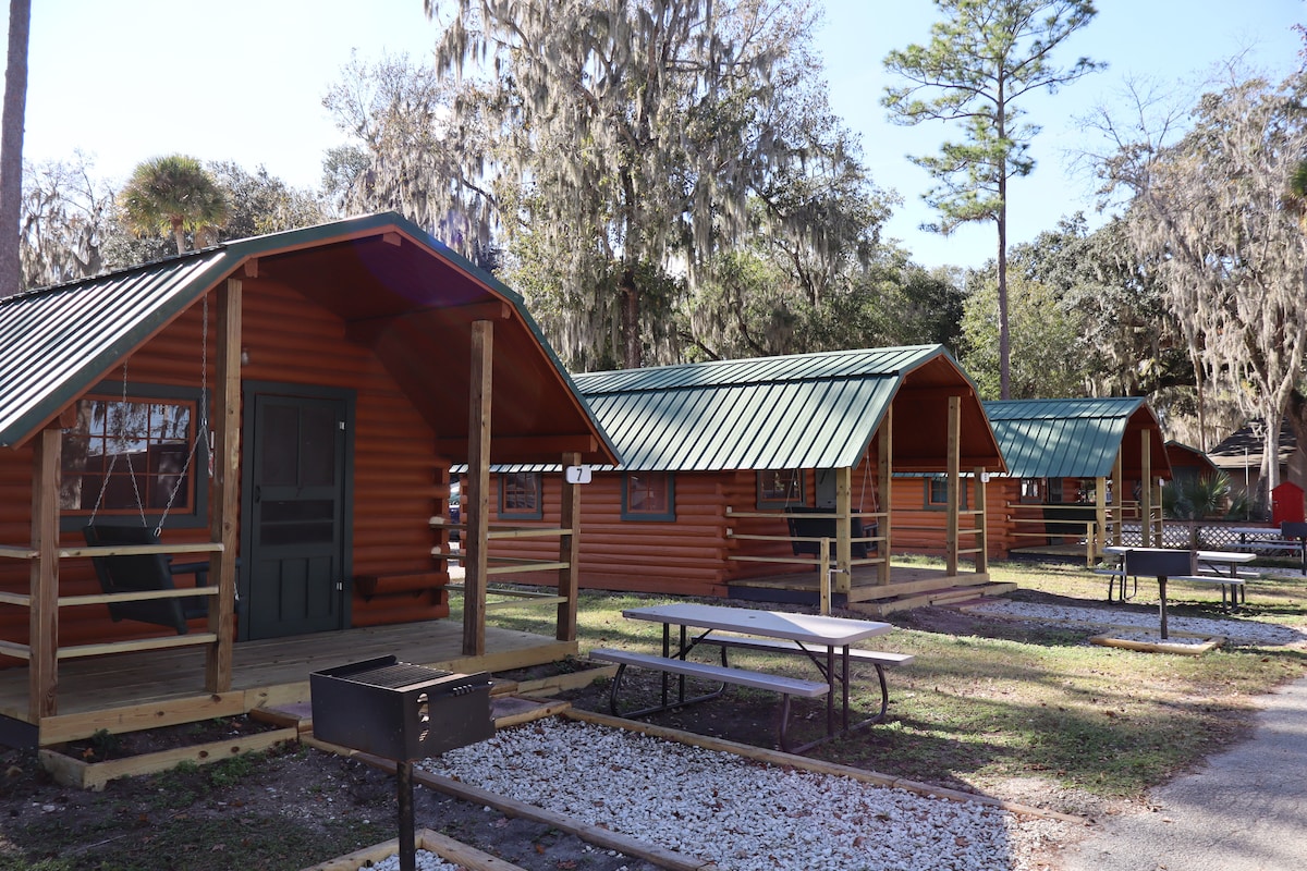 Escape to a serene 300 sq ft log cabin on 6.5 acres in DeLeon Springs, FL. This private retreat offers a kitchenette, bathroom, twin futon, TV, internet, and climate control. Relax on the covered patio overlooking the fire pit. Minutes from DeLeon Springs State Park, Daytona International Speedway, and Daytona Beach, with Orlando attractions just an hour away. Perfect balance of charm, comfort, and location.