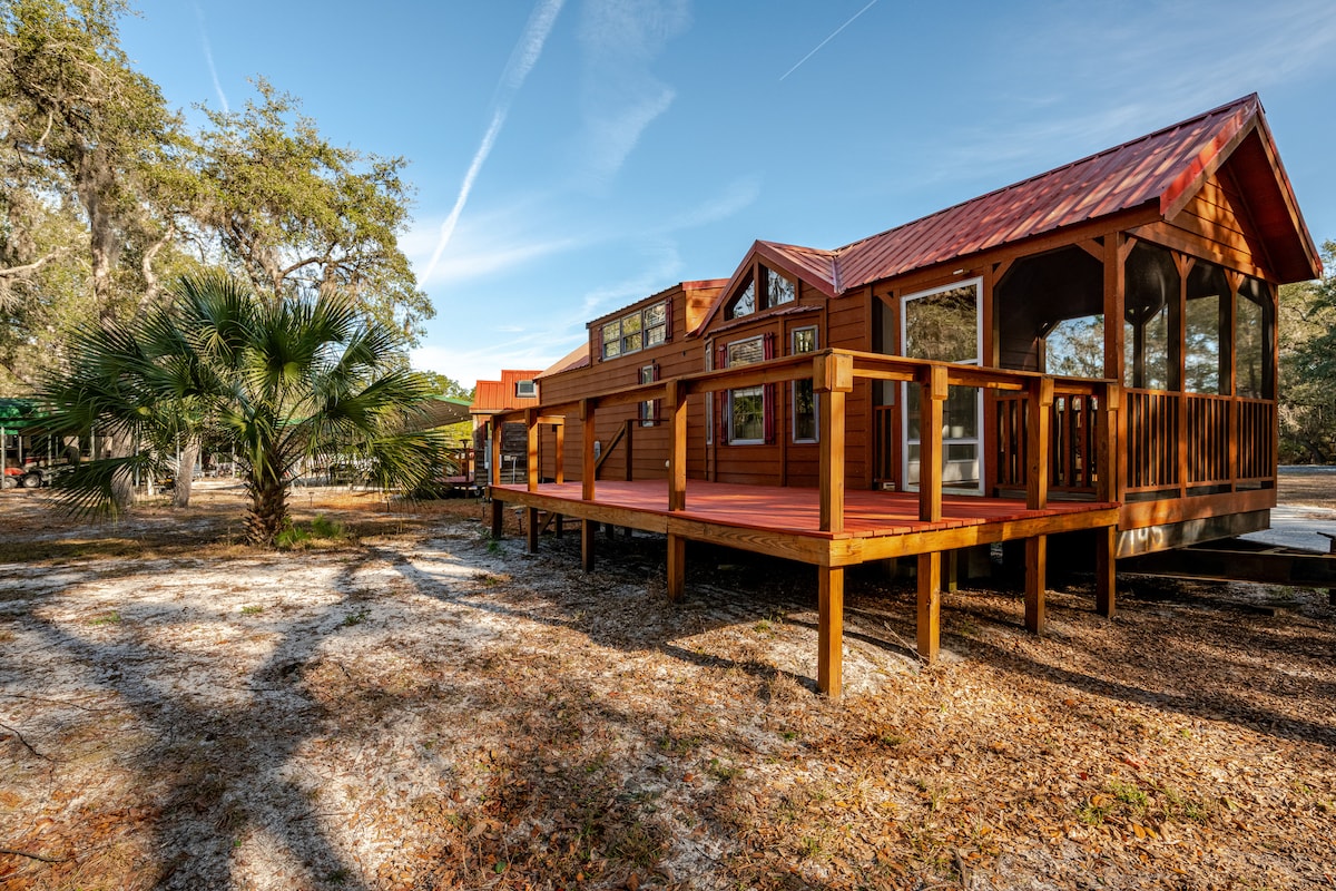 This charming equestrian lakefront cabin is located on a private, secluded, clean spring fed lake in Eustis Florida. Newly built in 2025. Lake access, including the ability to launch small boats on site. Fishing and campfires are welcome. Enjoy the peacefulness with a view of grazing horses on property. This is your authentic lake cabin destination. Away from all the chaos, but within minutes you can be in downtown Mt Dora or Eustis.