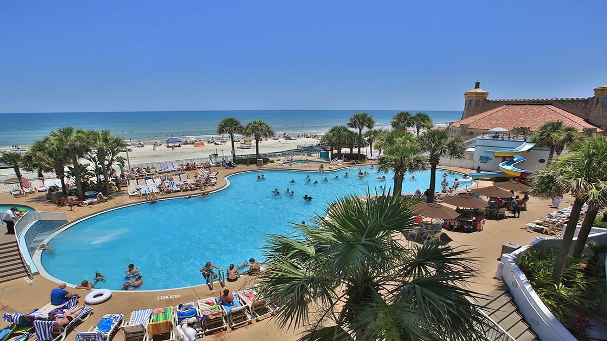 These spacious suites are located right on Daytona Beach. Wyndham Ocean Walk provides a family friendly atmosphere where all can relax in comfort. The resort has a beachfront location and is packed with amenities and activities for everyone to enjoy. This is an interior suite. It has a hallview and is assigned by the resort at check in. I do submit for upgrade but do not count on it. This has one king and one sofa bed. This is a private unit not shared.