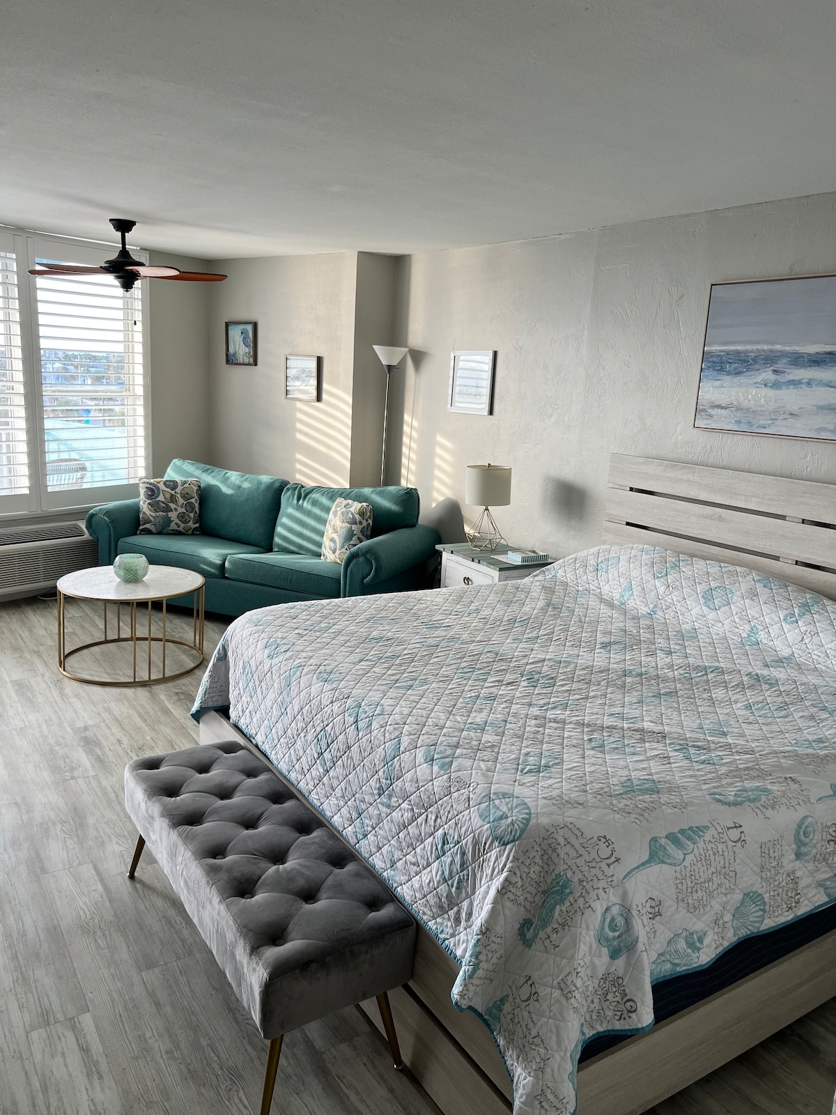 Enjoy a relaxing stay in the Horizon Suite at Atlantic Shores, featuring a full kitchen and space for the whole family, including doggies 🐶, just literal steps from Daytona Beach 🌊. This bright, spacious suite includes a king bed, twin daybed, and queen sofa bed, sleeping up to 5 guests. Cook your fav meals in the fully equipped kitchen with coffee maker, waffle maker, toaster, cookware. Parking, Wifi, TV streaming included