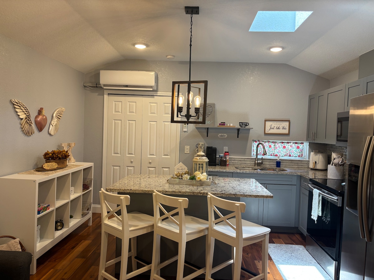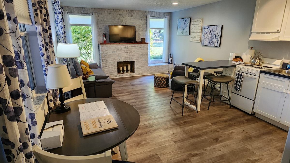 Enjoy a stylish experience at this cozy home in the heart of quaint, historic DeLand. This updated home offers the perfect blend of charm and chic modern living. Centrally located to the award-winning Mainstreet of downtown DeLand, & just a 7 minute walk from shops, diverse restaurants and brewery. The open plan design and large windows create a warm and spacious feeling. The house accommodates up to 5 guests making it ideal for families or adult groups visiting DeLand or Stetson University