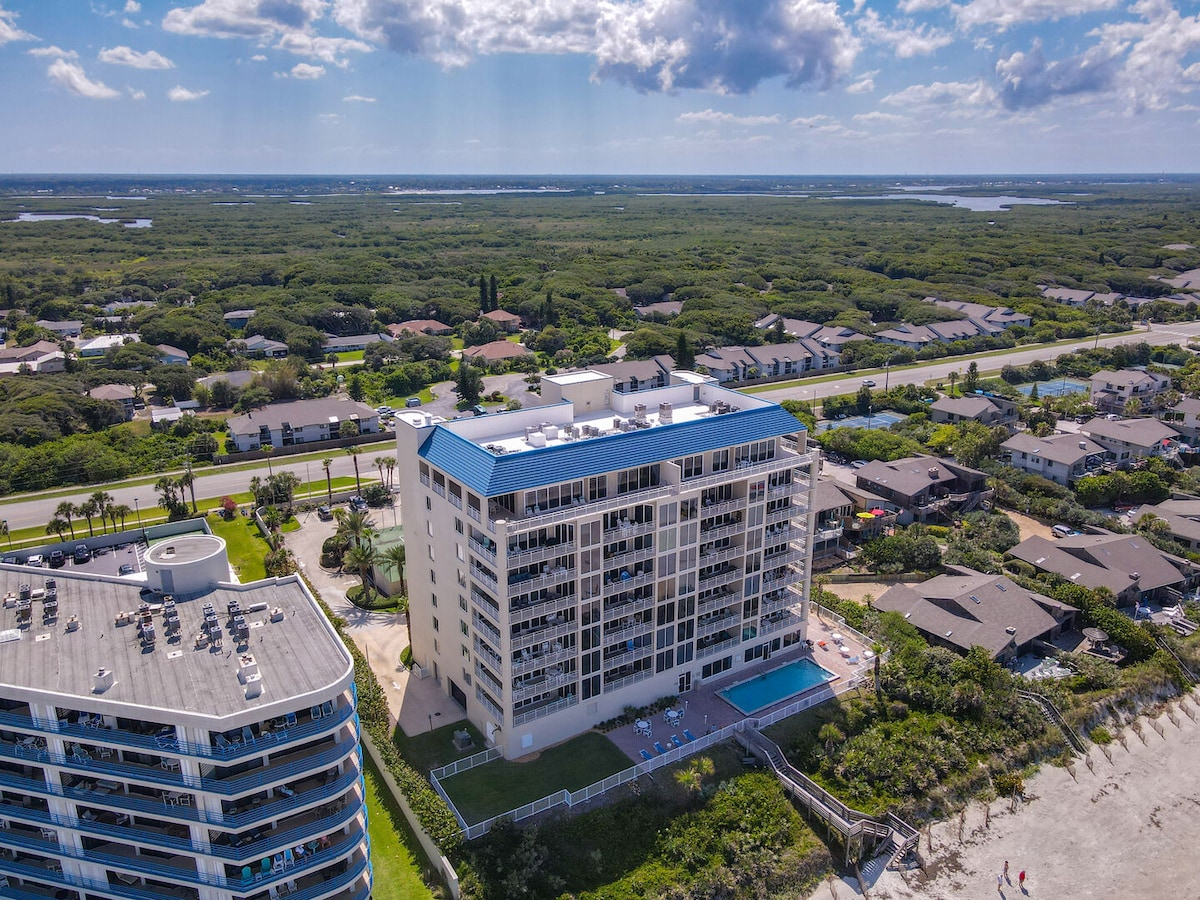 Step outside and immerse yourself in the ocean or a pool in minutes! Escape for days or weeks to this lovely renovated home, just a short stroll to pristine, no-drive New Smyrna Beach. Nestled in a resort-like setting, our condo features modern amenities and cozy comforts for an ultra relaxing stay. We provide towels, chairs, and all beach essentials for your seaside adventure. The huge enclosed veranda is perfect for lounging and dining in privacy. Visit this oasis to relax, refresh and renew!