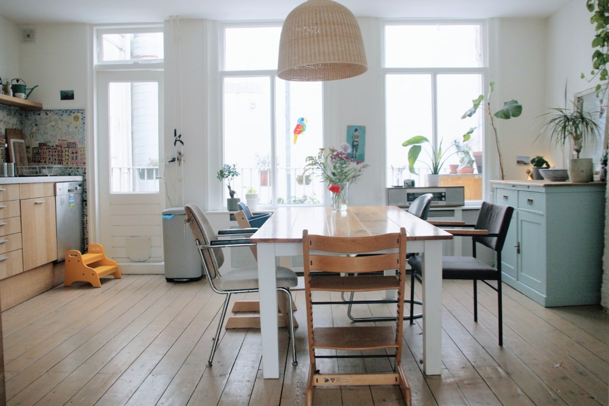 In the middle of the centre of Amsterdam and very suitable for families with kids. After a renovation of 14 months we are ready to receive guests who love space and quality. This is a high-end apartment with two bedrooms, suitable for 4 people. The apartment is a quiet hide away spot in the middle of the epicenter of Amsterdam The apartment is without breakfast, there is a breakfast service available from the deli nearby or breakfast cafe's and the supermarket are within walking distance.