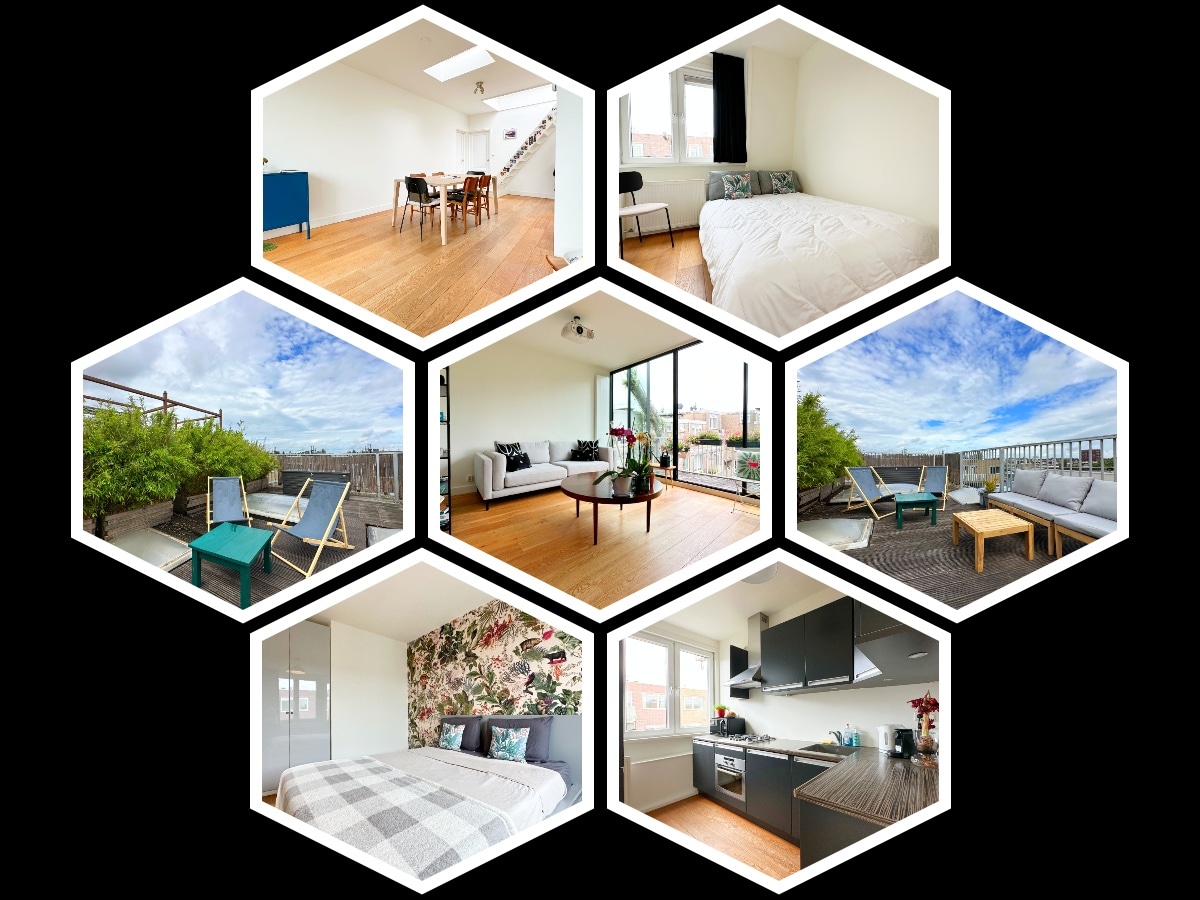 Welcome to one of Amsterdam's most vibrant neighborhoods: Old West Nestled by the picturesque waterfront, this luxurious 100m² apartment spans two floors (3rd and 4th). The crown jewel is a sun-soaked rooftop terrace, perfect for savoring a cold beer and BBQ. On chilly winter evenings, snuggle up by the charming fireplace. Whether you're a couple, parents with a child, or friends, this exquisite accommodation offers the perfect blend of comfort and style for an unforgettable A'dam experience.