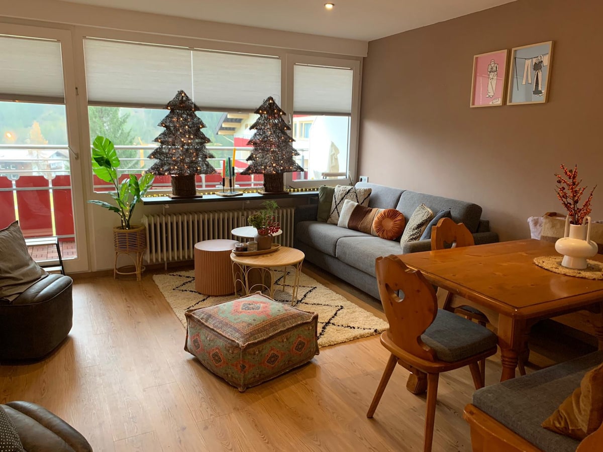 Das Apartment Hasenfluh verfügt über 62m² und bietet Platz für 4 Personen. - 2 Doppelbetten – für erholsamen Schlaf. - Gut ausgestattete Küche: Herd, Geschirrspüler, Nespresso-Kaffeemaschine. - Begehbare Dusche - Ausblick auf traumhaft schöne Alpenwiesen und Berggipfel vom Schlafzimmer und Terrasse. - Ausgezeichneter Wellnessbereich mit 3 Saunas und Pool. - Gratis W-Lan - Skiraum mit beheizten Schränken - Gratis und sicher parken in unserer Tiefgaragen