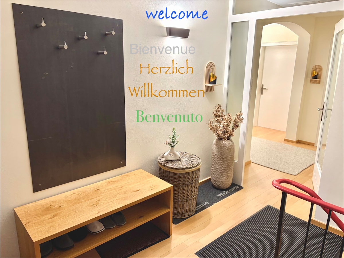 Die Ferienwohnung befindet sich im oberen Stock und ist sehr geräumig mit 90m2. Der gemütliche Balkon bietet einen schönen Blick auf die Schweizer Berge und das Zentrum von Dornbirn mit der Stadtpfarrkirche. Bei guter Fernsicht, kann man sogar bis zum Bodensee blicken.
