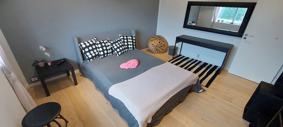 Nyetableret stort værelse i særskilt bygning på landbrugsejendom. Egen indgang. Boligen består af stue/køkken, soveværelse og badeværelse. I alt 30 m2. Alt i lyse og venlige materialer. Der er køleskab, ovn/micro-ovn og induktionskogeplade. Boligen er udstyret med al nødvendig køkkenservice, glas og bestik. Der er mulighed for at låne Chromecast.