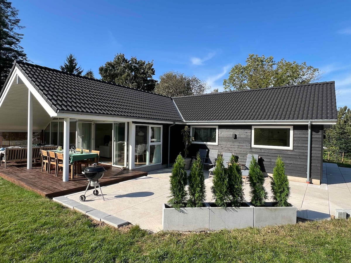 Vi udlejer vores smukke arkitekttegnede hjem, som hører under Marienborg Gods og ligger højt med et fantastisk lysindfald og udsyn til skov og marker fra alle vinduer. Fugle, fasaner og rådyr i haven minder os om, at vi er tæt på naturen med adgang til skoven lige ude foran boligen, 3 km til Camønoen og med kun 5,5 km til den nærmeste strand er der heller ikke langt til Østersøen. Vi har lagt al vores kærlighed i indretningen af huset, så der venter jer en personlig og udsøgt oplevelse.