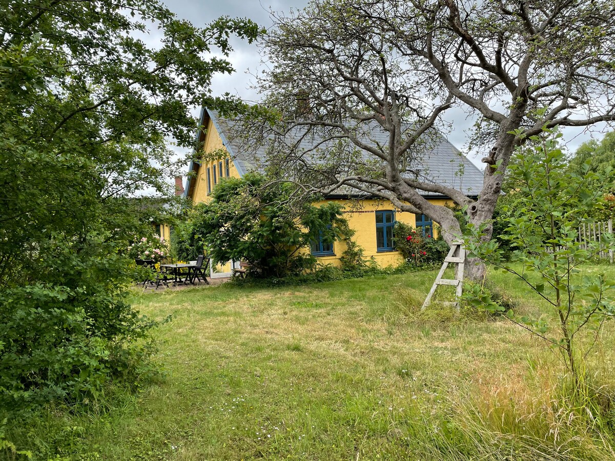 Charming and rustic little cottage with beautiful natural garden. There is room for children, butterflies and wild flowers - and there is no television or internet. The summer house is furnished with a kitchen/living room with wood-burning stove and sofa bed, well-equipped kitchen, bathroom and two bedrooms (one children's room), washing machine and tumble dryer. Toys, swing and trampoline in the garden. Less than 300 meters to water/beach. Close to forest, cozy small towns, Møn and attractions.