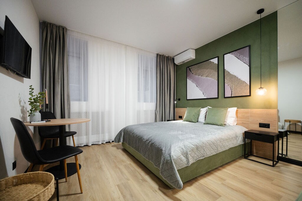 Relax in a deep soaking bath, sleep on a premium-quality mattress, read in a cozy armchair, or enjoy a glass of wine while watching the sunset from the 12th-floor window. This apartment is designed for comfort, calm, and functionality — ideal for both short and extended stays. You’ll have access to a fully equipped kitchen, fast Wi-Fi and a bicycle for exploring the area. Right across the street is a forest park — perfect for picnics, hiking and bike rides.