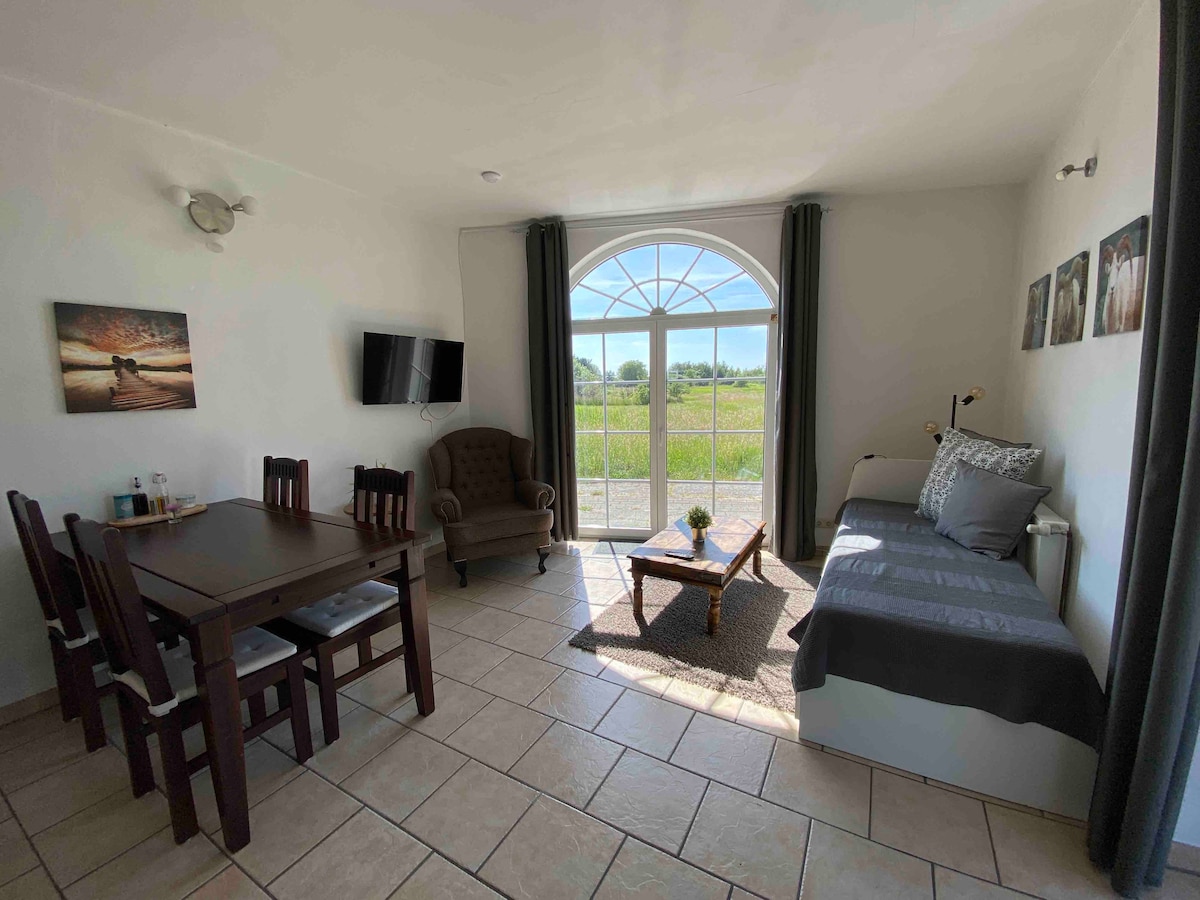 Das Apartment befindet sich in einem liebevoll modernisierten Haus im idyllischen Dorf Vieregge – ein echter Geheimtipp für alle, die fernab der Touristenströme Ruhe und Natur genießen möchten. Die 34 m² große Wohnung ist durch große Fenster und Oberlichter wunderbar lichtdurchflutet und überzeugt mit geschmackvoller, klarer Einrichtung und eigener Terrasse. Zur Ausstattung gehören ein separates Schlafzimmer, ein modernes Bad sowie ein großzügiger Wohn- und Essbereich mit offener Küchenzeile.