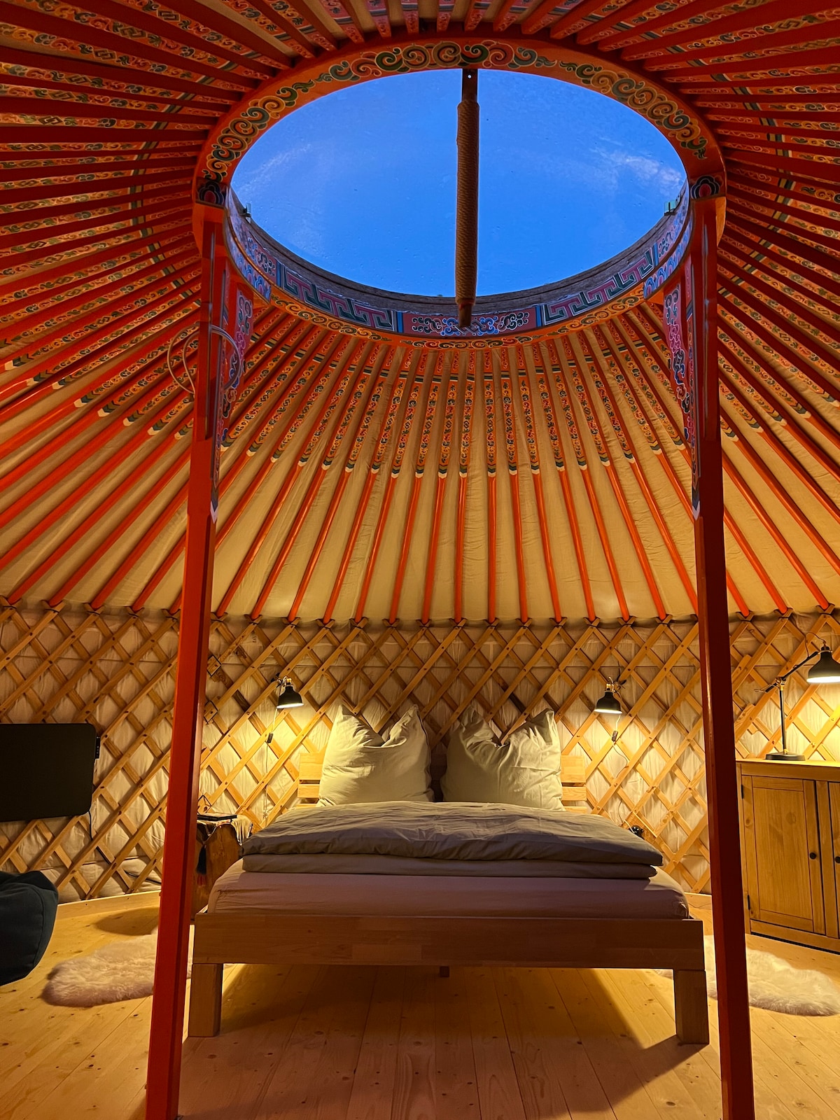 Herzlich willkommen im Ferienidyll am Waldrand. Die Unterkunft befindet sich auf unserem Grundstück, inmitten der einmaligen Natur der Mecklenburgischen Schweiz. Eingebettet in die hügelige Landschaft findet Ihr hier Erholung pur. Das Gebäudeensemble besteht aus einer großen Schlaf- und Wohnjurte und einem Häuschen, in dem sich die vollausgestattete Küche und das Bad mit warmem Wasser befinden. Genießt die Momente in der Sauna, am Teich, am Lagerfeuer, auf der Hängematte oder im Blumengarten.