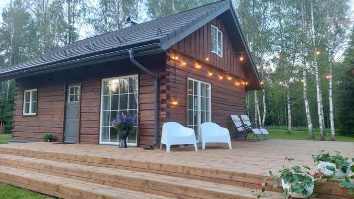 A new cottage completed in 2024 awaits you in South Estonia, Kütiorg. Which is the largest and most powerful primeval valley in Estonia. The cottage is lake-side, next to the old watermill, offering unforgettable views over a peaceful lake and surrounding forest. The property also features a beautiful large apple orchard. Just next to the house, you'll find a hiking trail surrounded by breathtaking nature. On the hillside, grapes and lavenders flourish, adding to the charm of the surroundings.