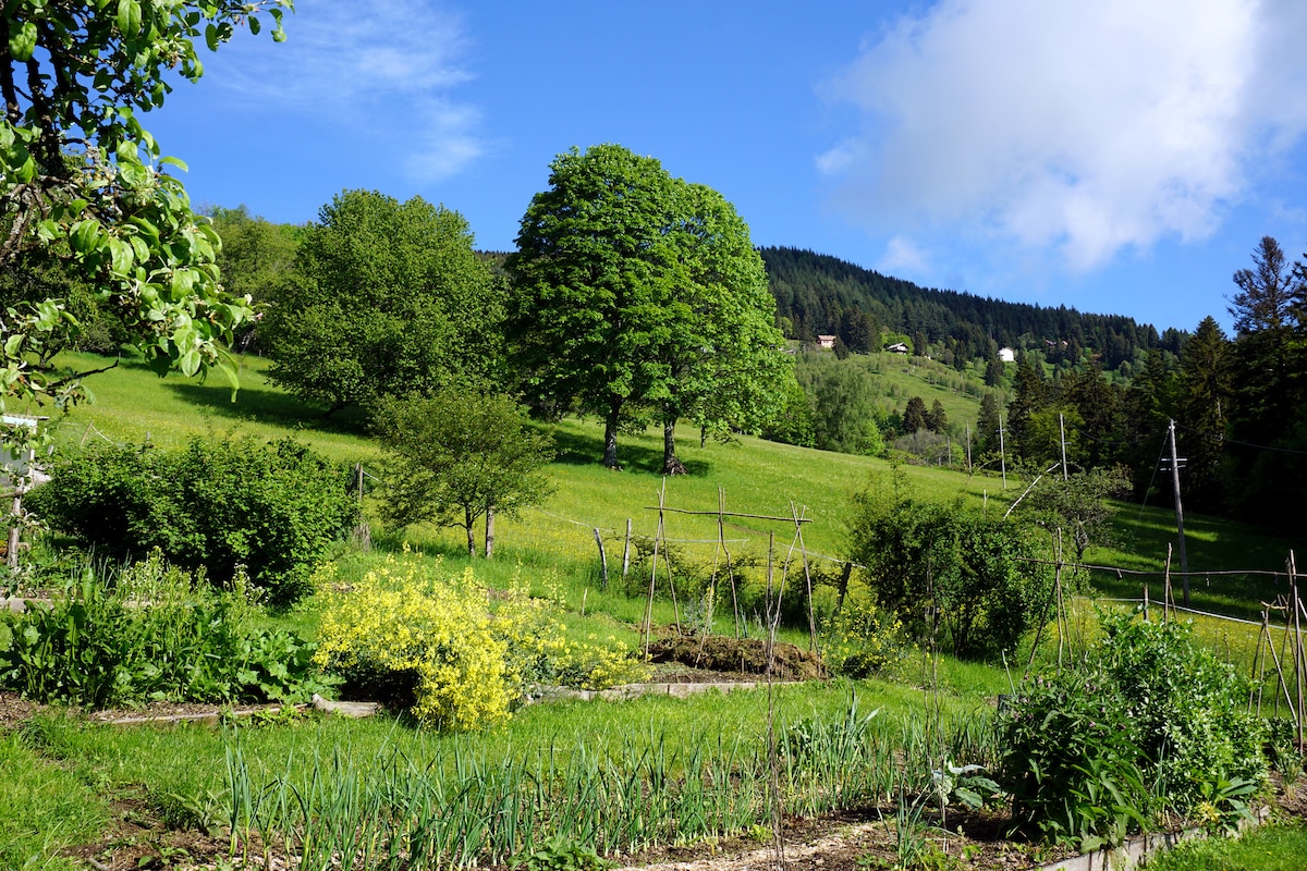 Bienvenue dans notre gîte nature « Mon jardin nourricier » à 850 m d’altitude proche du Markstein et du Petit Ballon, en montagne (Vosges, Alsace, Haut-Rhin), entre forêt et pâturages. L'endroit idéal pour se reposer ou randonner! Les animaux sauvages sont visibles autour de la maison. Des fermes proches proposent des produits locaux. Comptez 15 min en voiture pour les commerces classiques. Notre gîte est équipé de toilettes sèches. Il n'est pas sécurisé pour les jeunes enfants et les bébés.