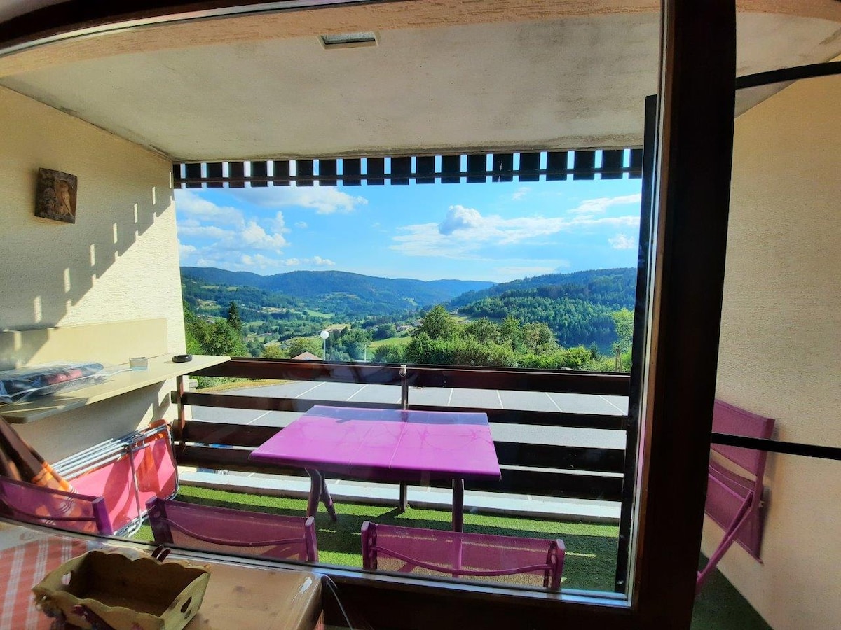 Entre lacs et montagnes profitez de l'hiver et de l'été. Appartement au pied du plus grand domaine skiable de l'est de la France alt 955m. Idéal pour les couples,familles,amoureux de la nature, randonneurs. Vue sur les pistes de ski alpin et nordique,et départ de circuits raquettes ou piétons,depuis l'appartement. A 10 mn de la Bresse centre,( commerces,piscine,patinoire,restaurant,etc) et 10 mn de Gérardmer(lacs),sommets Vosgiens a 3 km ou 20 a 25 mn a pied.