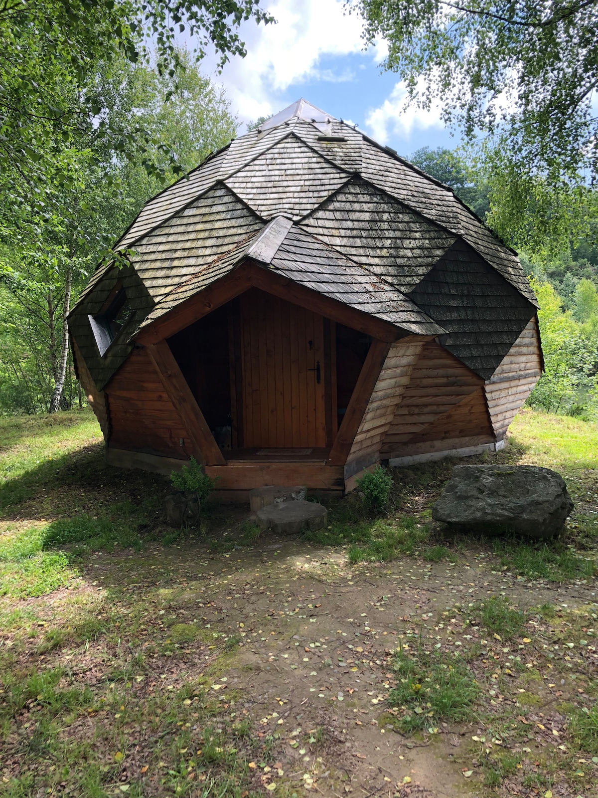 Geodesic Dome: The star! Energy-autonomous dome! (photovoltaic panels, rainwater treatment, showers and toilets outside the accommodation) Located 10 minutes from Gérardmer, on the mountainside, it enjoys a splendid view of the sunset and the starry sky! Capacity: 2 people max in the dome (ideal for couples) Options: meals with local products, breakfast. Outdoor refreshment bar with local products open 5 p.m. / 7 p.m. by the river