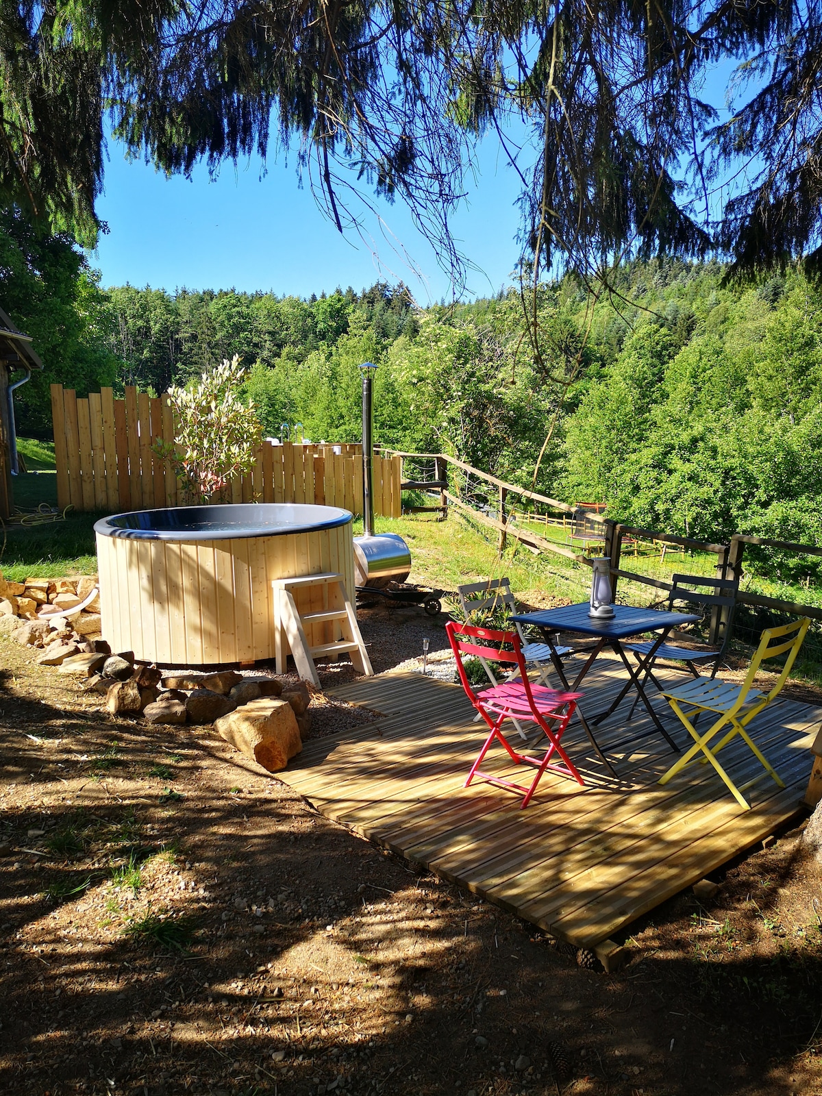 Nous sommes tombés sous le charme de cette vue incroyable sur la montagne et avons construit ce petit chalet juste à côté de notre maison : une « guest house » située à presque 1000m d’altitude. #bikoque.vosges Cet endroit paisible, exposé plein sud est notre petit coin de paradis ! Il permet de profiter pleinement des joies de la montagne : Domaine de ski de fond accessible à pied Pistes de ski alpin à 5min. À pied comme à vélo, la forêt est juste ici, à notre porte !
