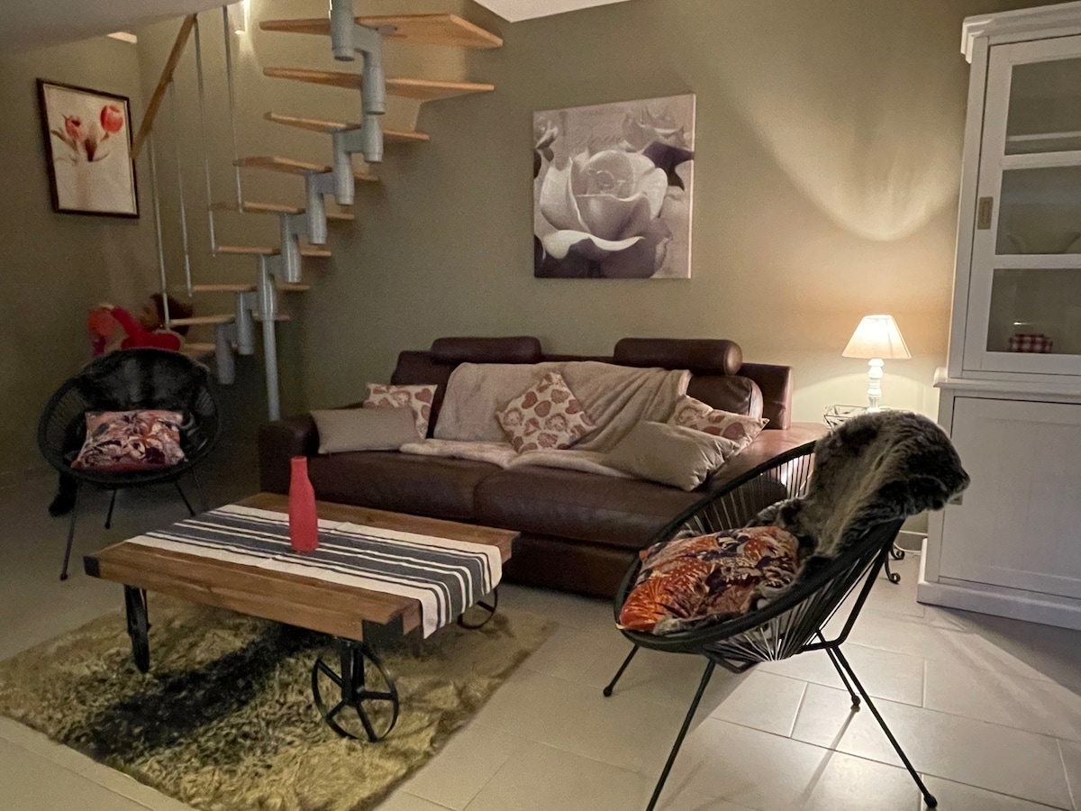 Vous apprécierez ce logement avec une literie confortable et aussi pour son charme. Idéal pour un couple. Muni de TV lecteur DVD. Avec une terrasse privative, deux transats, déserte table et chaises, plancha, fauteuils, parasol. Classé 4 étoiles par syndicat d' initiative local Peignoir de bain à disposition, mais tout est fourni à volonté, linge de maison, linge de table, accessoires de cuisine, nécessaire de toilette, etc NB : Les animaux NON ADMIS