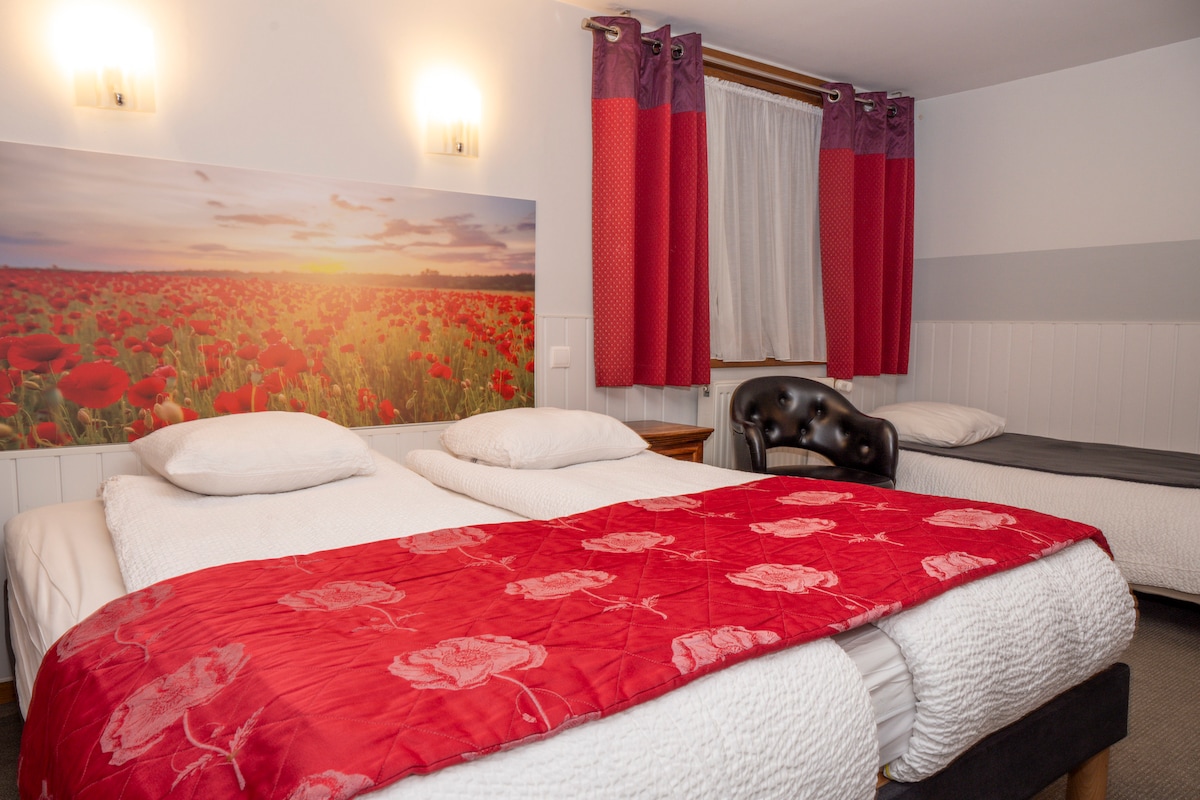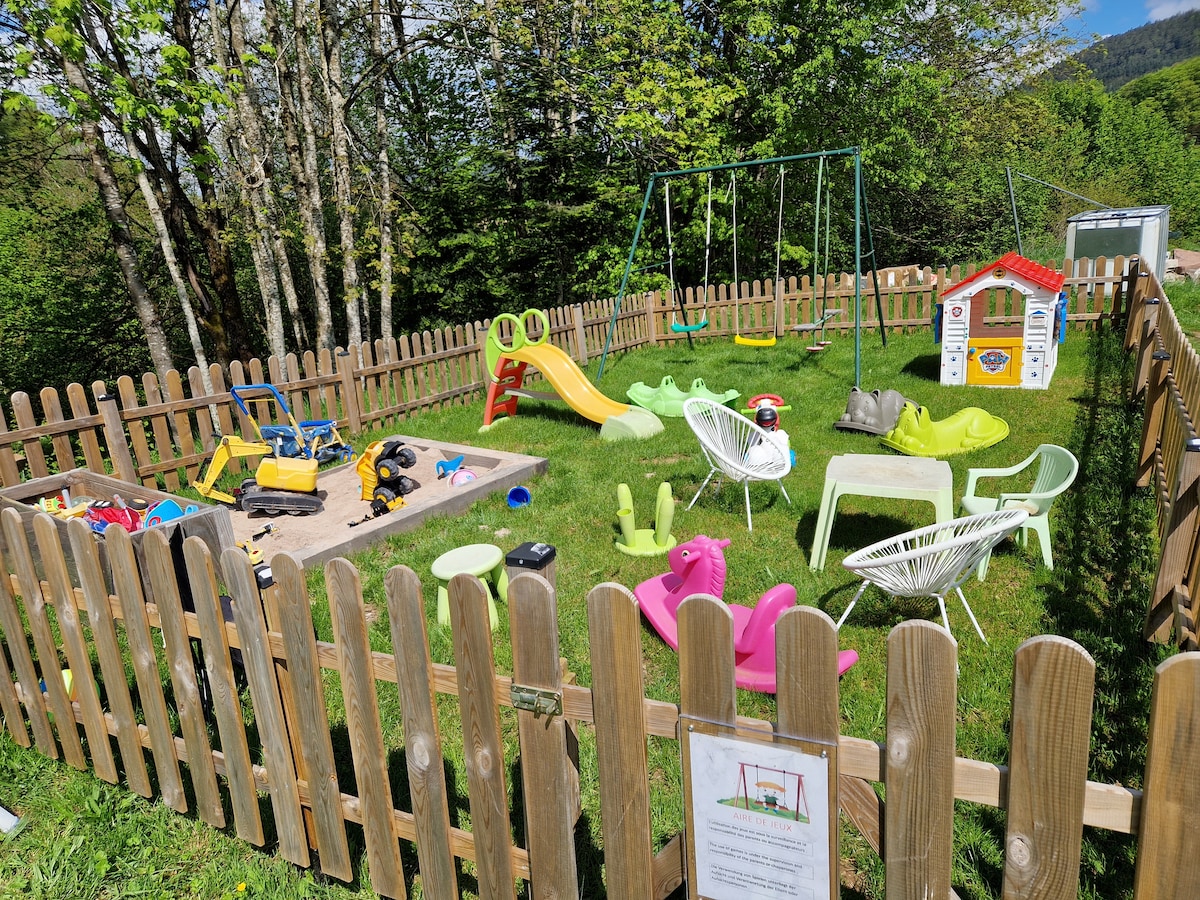 Nous vous proposons une chambre pour deux personnes avec petits déjeuners compris. Vous pourrez également réserver un espace à notre spa privatisé (en supp). Profitez gratuitement du billard, baby-foot, fléchettes, fitness, ping-pong. Également local à skis et vélos privé. Parking sur place. À très bientôt