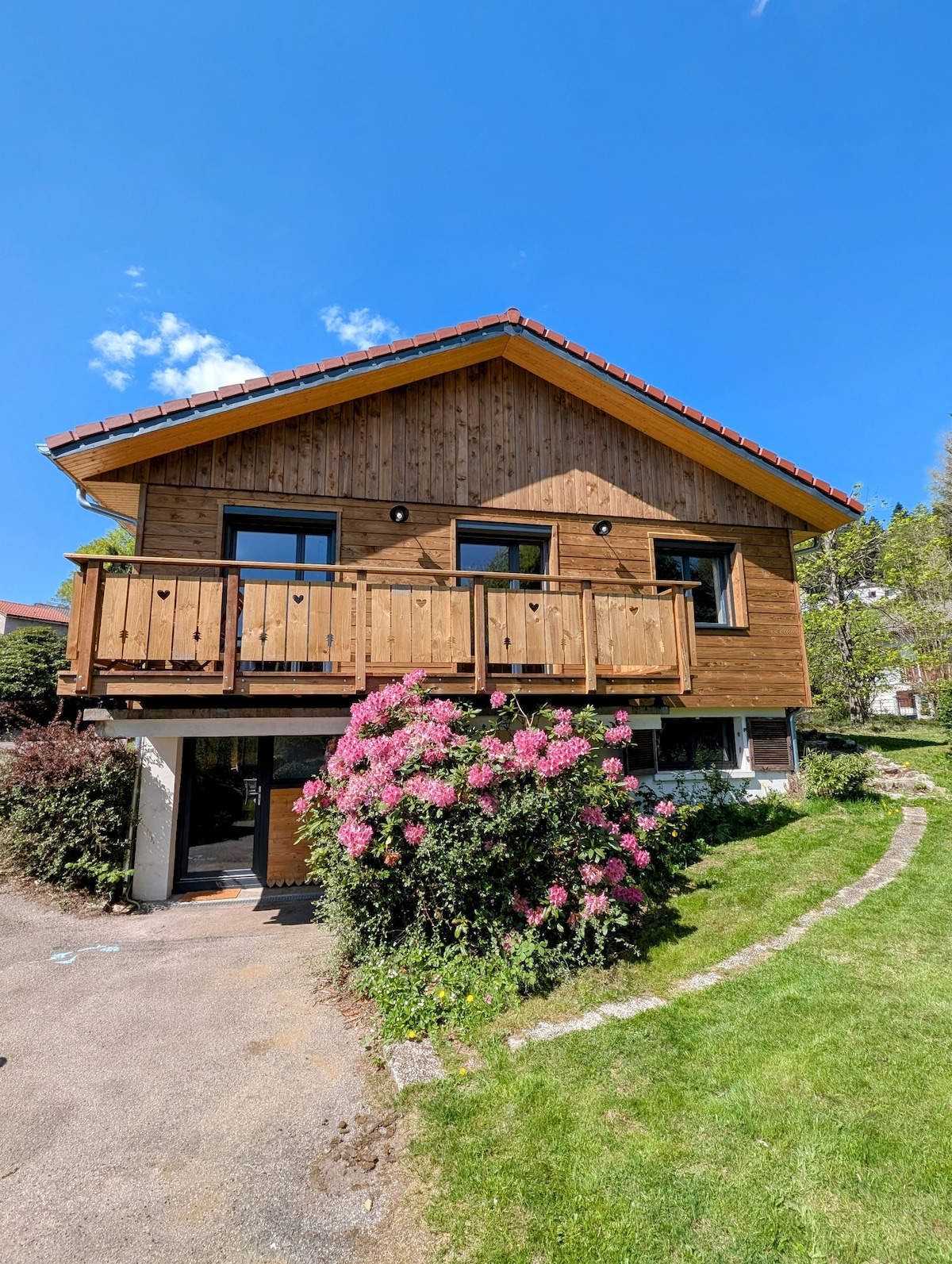 Séjournez en famille, en couple ou solo dans ce magnifique chalet en A, type maison A-frame avec une vue magique sur les montagnes. Détendez-vous dans ce logement atypique et calme, à l'architecture insolite. Profitez du levé et du coucher de soleil sur les montagnes depuis votre terrasse ou confortablement installé sur votre lit, dans votre chambre panoramique, à l'étage. Le point de départ idéal pour profiter de votre séjour dans notre belle région des Vosges.