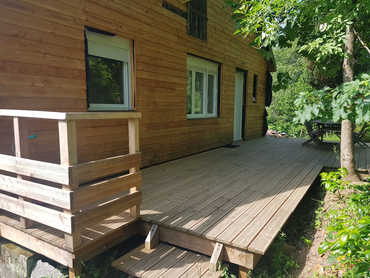 Charming cottage with air conditioning, in a chalet, surrounded by nature; a modern accommodation decorated in the Montagnard spirit: Composed of a large and beautiful living room overlooking a superb terrace with plunging views, over the Valley and the mountains.