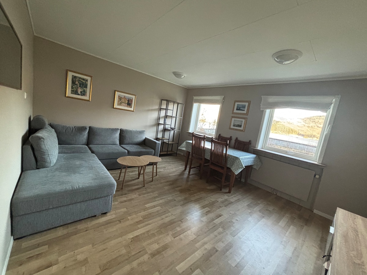 Modern and cozy apartment on the first floor. Living room and kitchen with cooking facilities and fridge. Tiled bathroom with washer and dryer. Spacious bedroom with large double bed (200x180) Good parking spaces right by the house. Access to garden with outdoor furniture. Great view towards the center of Vinje and Lønahorget. Hiking trails and activity opportunities right outside the doorstep. Walking distance to grocery and gas station.