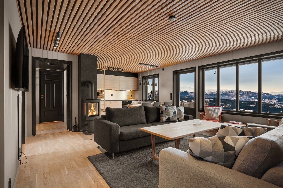 Denne nyrenoverte leiligheten kombinerer en helt unik utsikt med moderne, gjennomførte materialvalg. Store vinduer åpner rommet mot fjellet, og den private badstuen gir et eksklusivt preg etter en dag ute. Terrassen lar deg nyte utsikten fra første rad året rundt. Med kort vei til skiheisen, fine turstier og rolige omgivelser får du et opphold som passer like godt for par og venner som for familier som ønsker komfort og kvalitet.