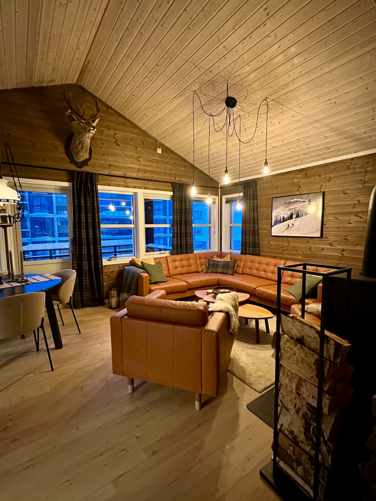 Perfect for 2 families on a trip or an extended family, both summer and winter ❄︎❀ - And everything from cleaning & bedding, to firewood & coffee is of course included! Here you also get: ✦ Well-equipped kitchen ✦ Washer & Dryer ✦ 60' Smart TV with streaming services ✦ 4 bedrooms & 10 beds ✦ 3 Parking spaces & Electric car charger ✦ Ski-in The cabin is located in the lower plateau of the new cabin field Mørkveslii. 4 min drive to Myrkdalen ski resort.