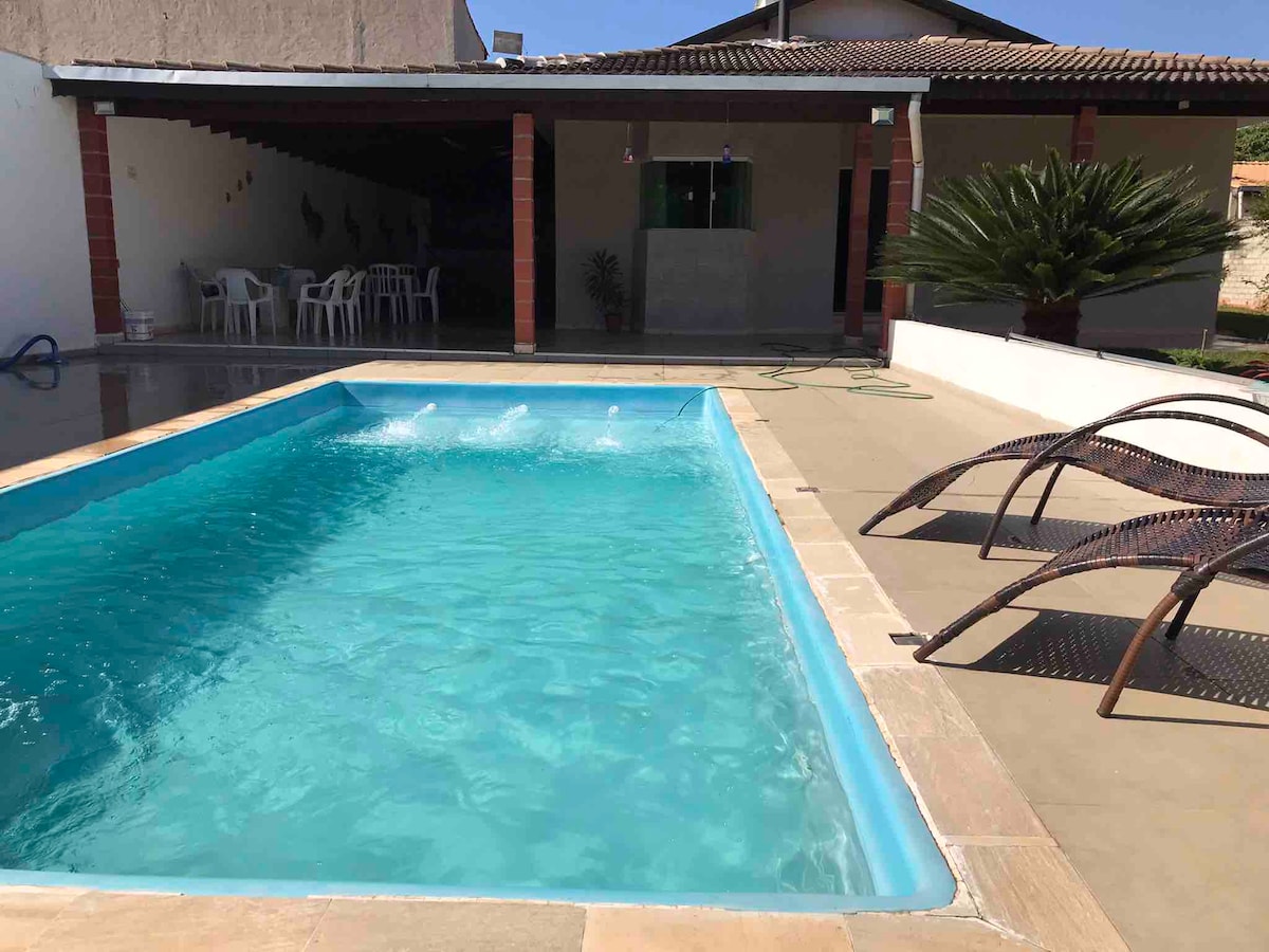 Casa de campo em condomínio fechado, com churrasqueira, piscina com hidromassagem, mesa de sinuca, horta, 3 quartos, lavabo, sala ampla com cozinha americana, internet em fibra óptica com 120mb. Condomínio com lindos lagos, trilha e bosque, muita natureza e total segurança. Ideal para relaxar com os amigos, ótima churrasqueira, casa e mobília novas.